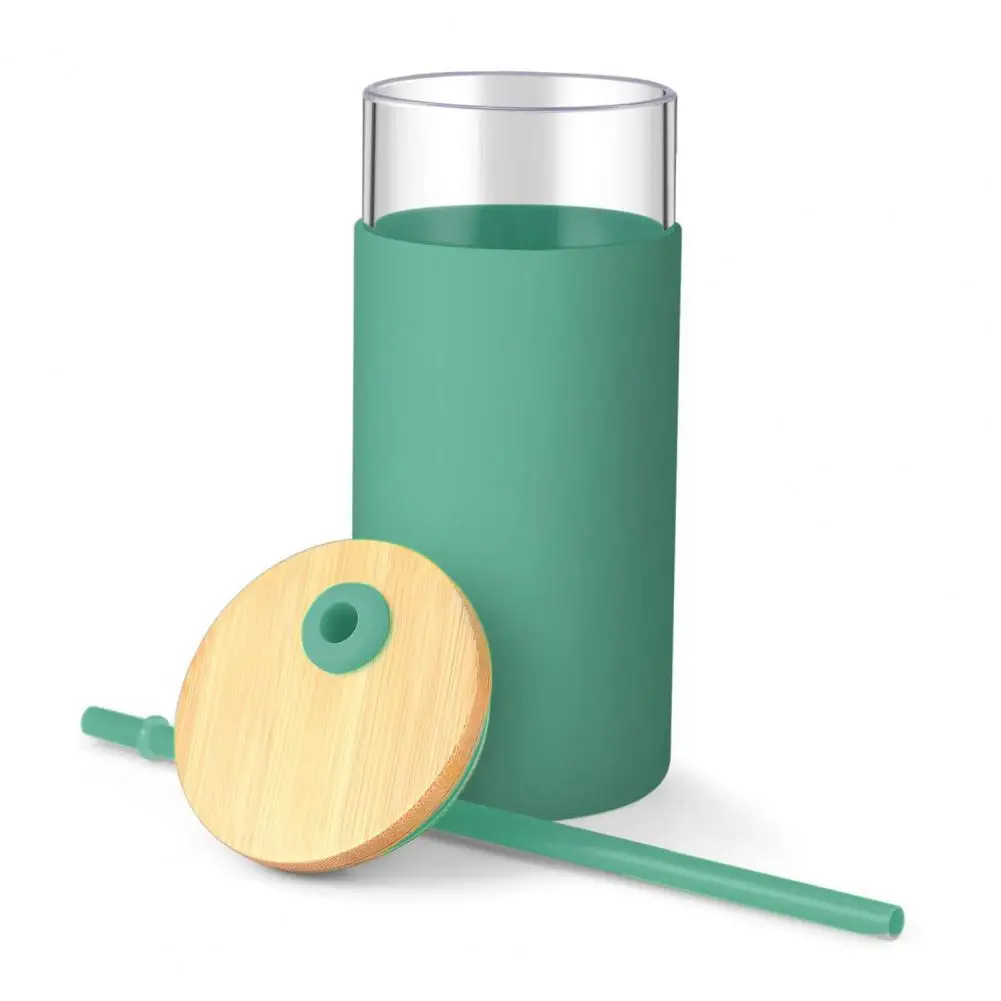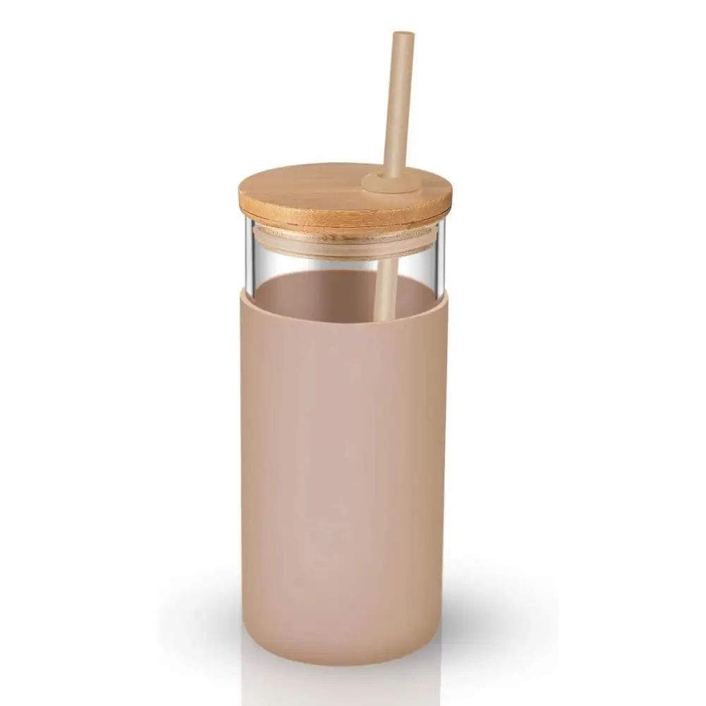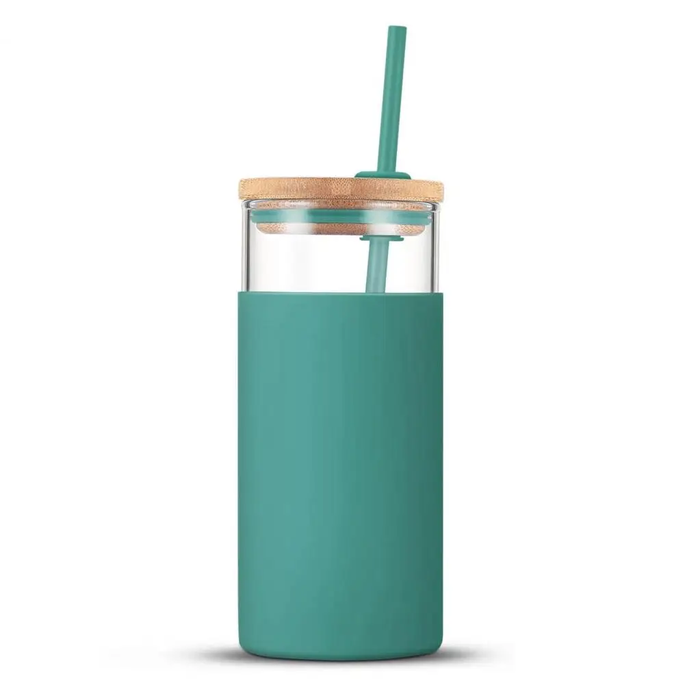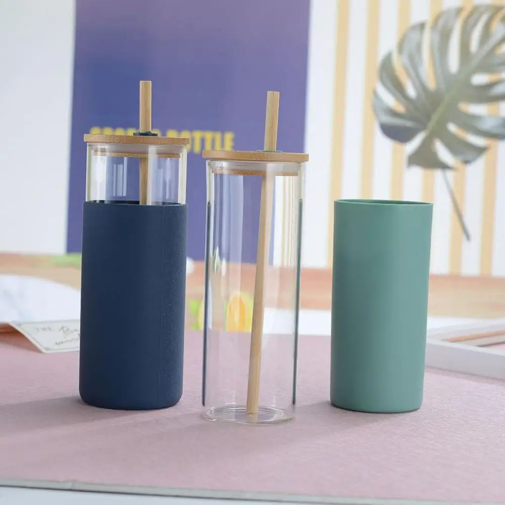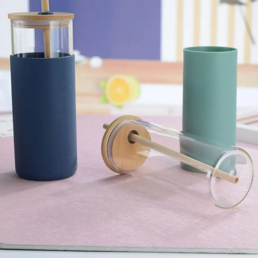20 унций одна стена стакан защитный рукав деревянная крышка стеклянная чашка бутылка с соломой