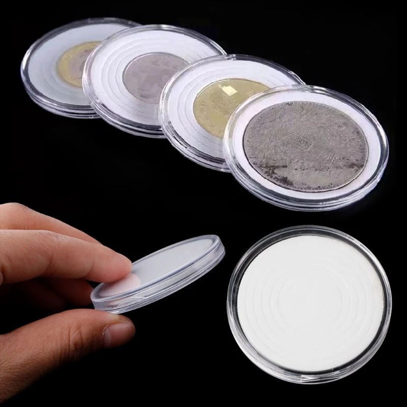 Круглая капсула 46 мм внутреннего диаметра и 5 мягких колец для подушек различного внутреннего диаметра, что делает этот держатель для монет размером 6 монет разного диаметра.