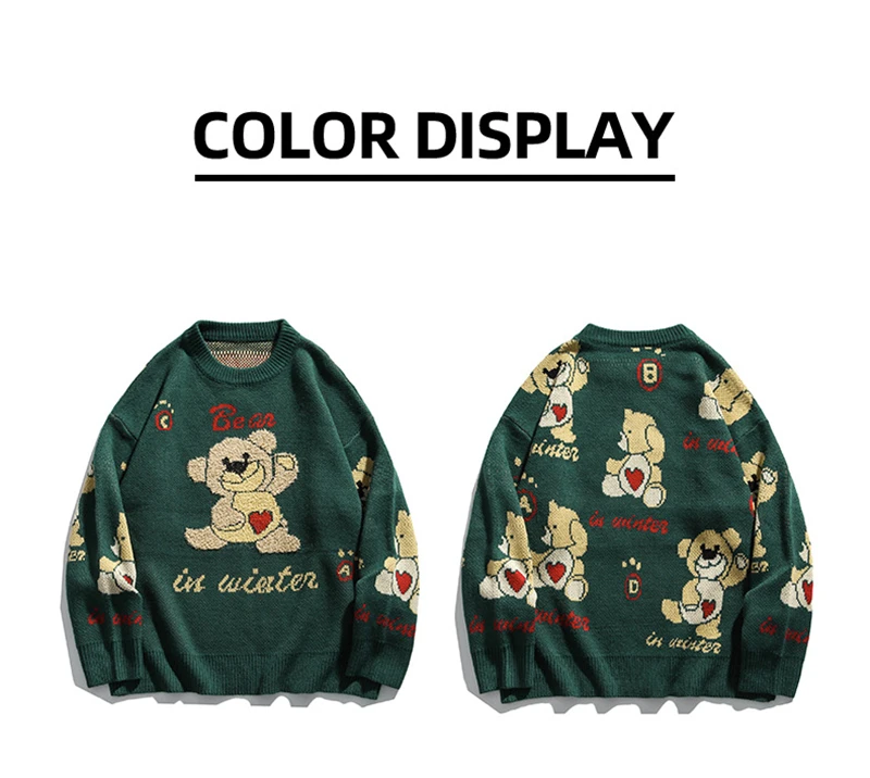 Japanese Harajuku Cute Knitted Heart Bear Sweater for Women and Men Oversized Kawaii Graphic Cartoon Pullover Bear Jumper