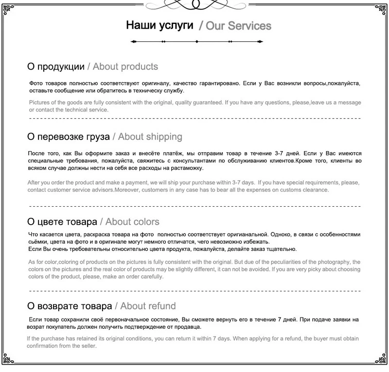 If you are dissatisfied with our products or services, in the 15 days of receiving your order, we could provide free local return service to you.