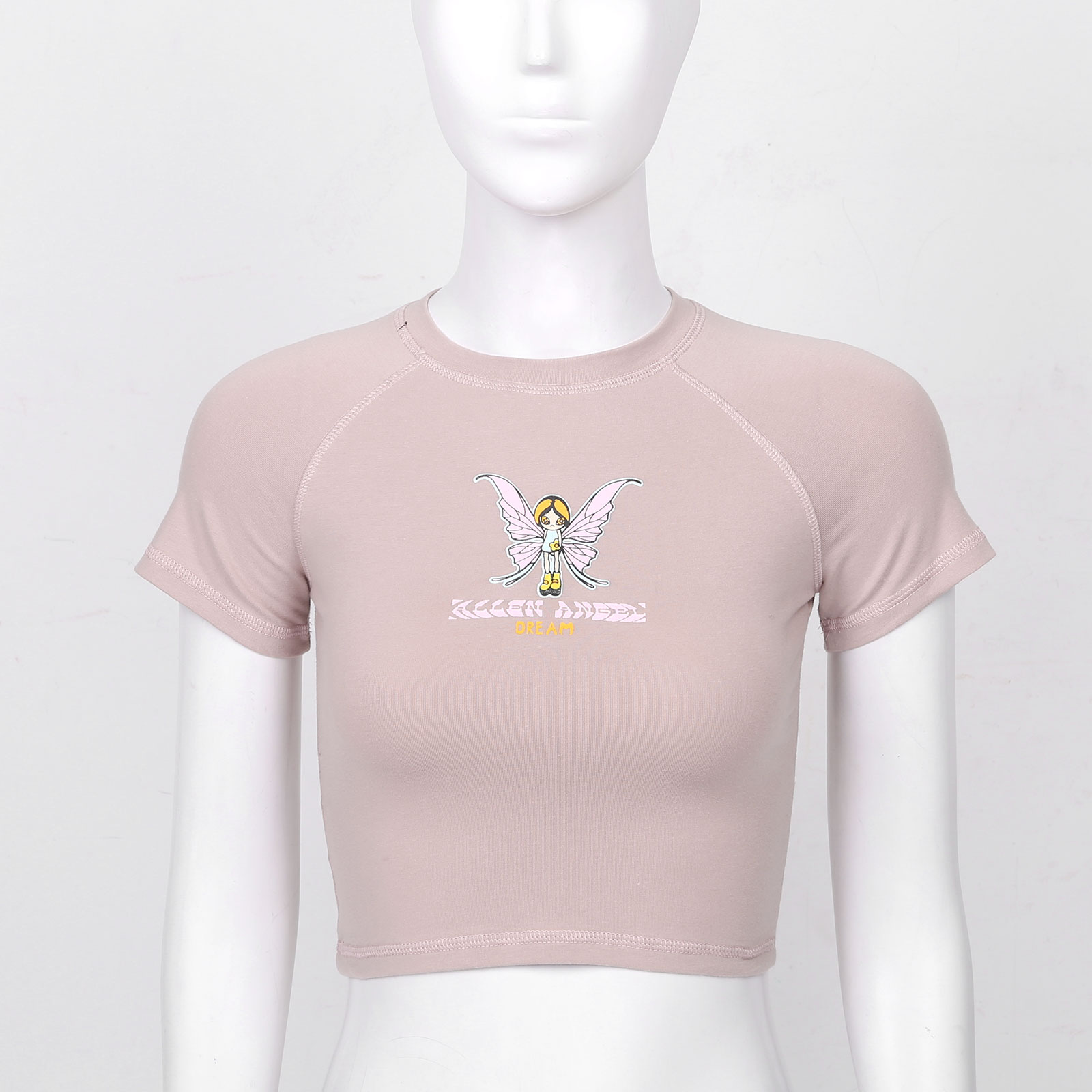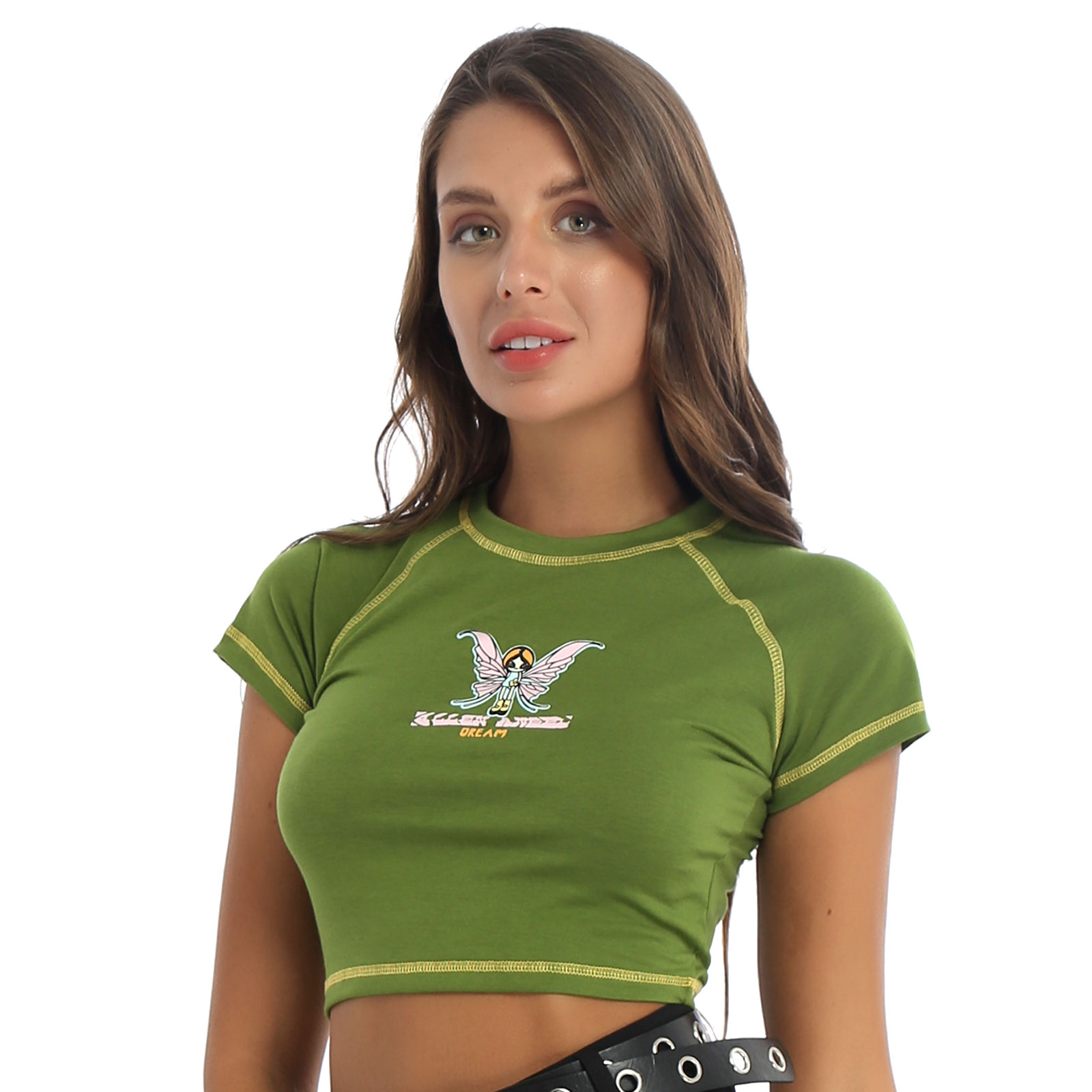 Женская облегающая футболка с круглым вырезом и коротким рукавом для девочек, летний Повседневный укороченный топ с принтом бабочки.