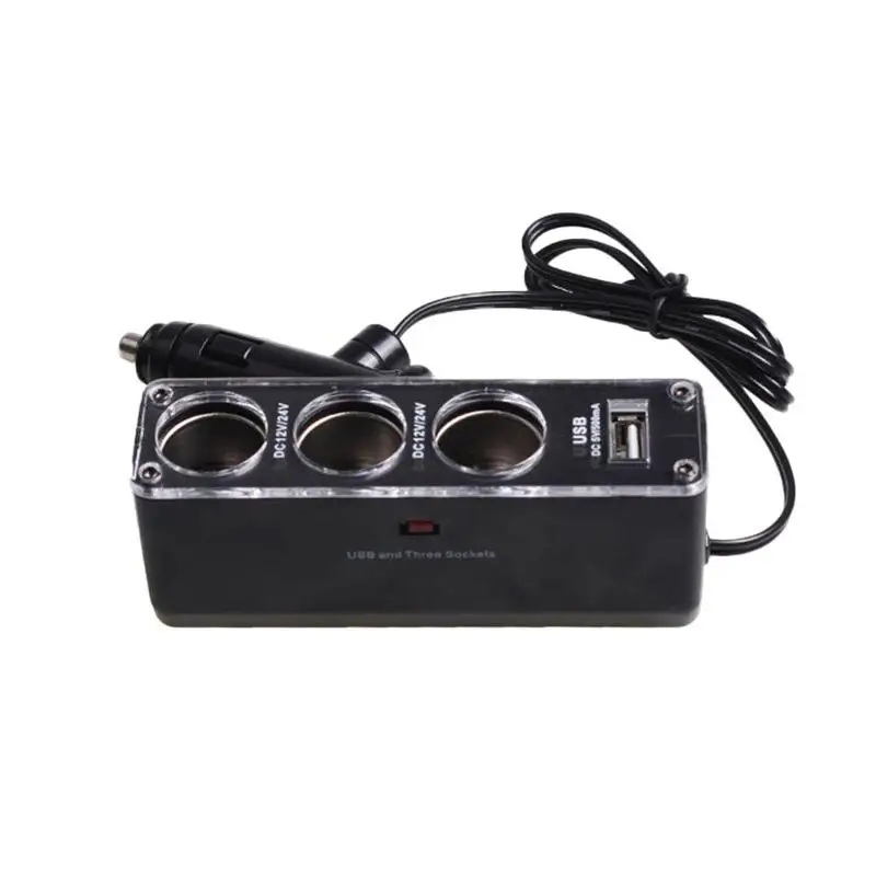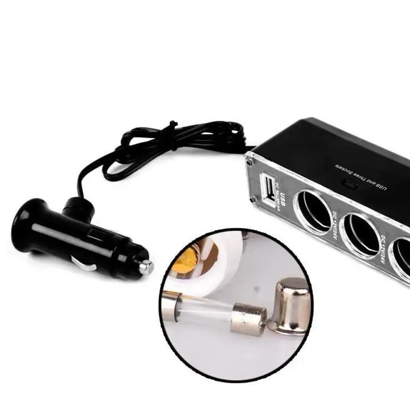 1 х трехсторонний автомобильный прикуриватель (разветвитель гнезда прикуривателя + USB-порт)