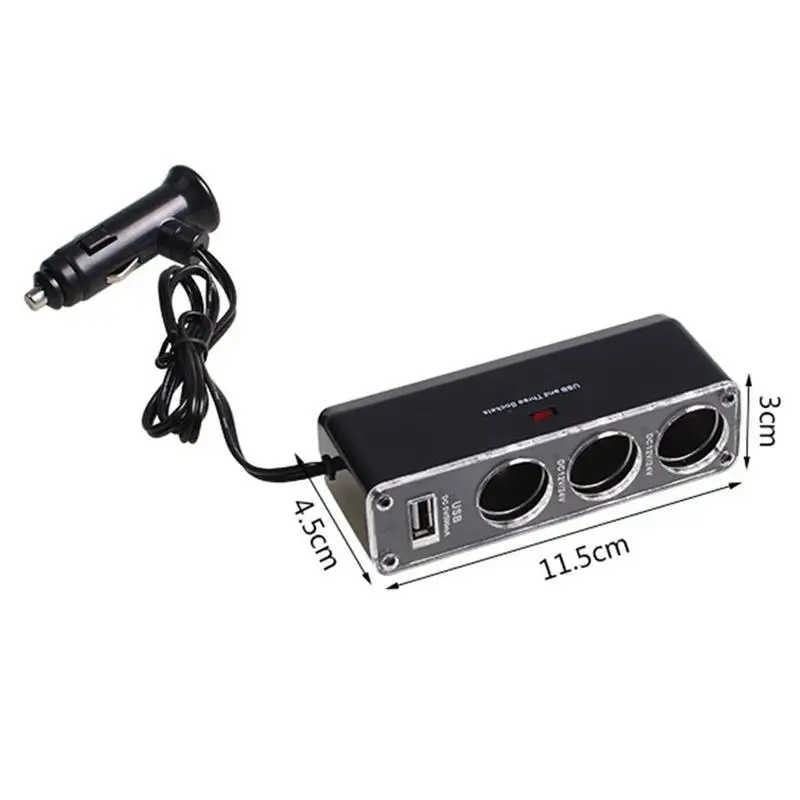 Этот тройной адаптер для автомобильного прикуривателя с USB-выходом предназначен для увеличения розеток в вашем автомобиле. Добавляет к консоли вашего автомобиля еще две розетки прикуривателя постоянного тока и порт питания USB