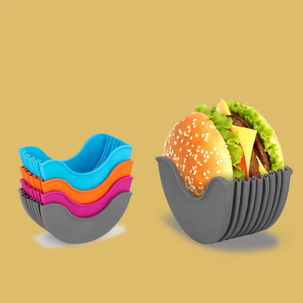 😃Растягивается: Отрегулируйте размер в соответствии с размером еды😃Анти-падение: портативный, чтобы держать бургер/сэндвич/пончики😃Стирка: легко чистить😃Портативные кухонные инструменты для хранения для семьи