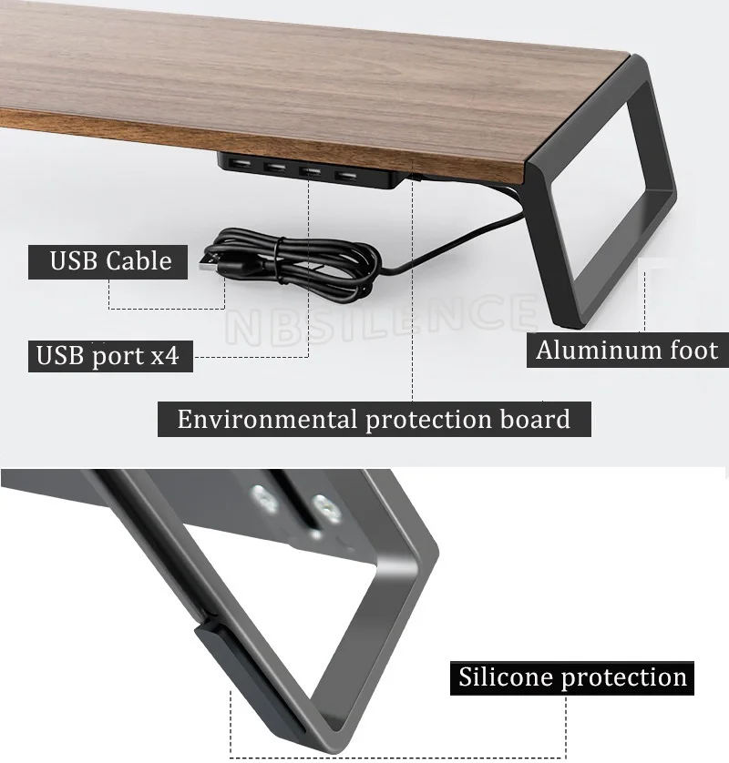 ※【Integrated USB 2,0 Hub ports】-этот монитор подъемный стол интегрирован с четырьмя портами USB, supprt зарядное электрическое устройство и передача данных.