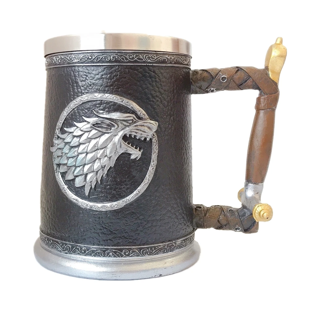Крутые кофейные кружки с волком из нержавеющей стали, чайные чашки для вина в стиле черепа, креативная посуда для напитков