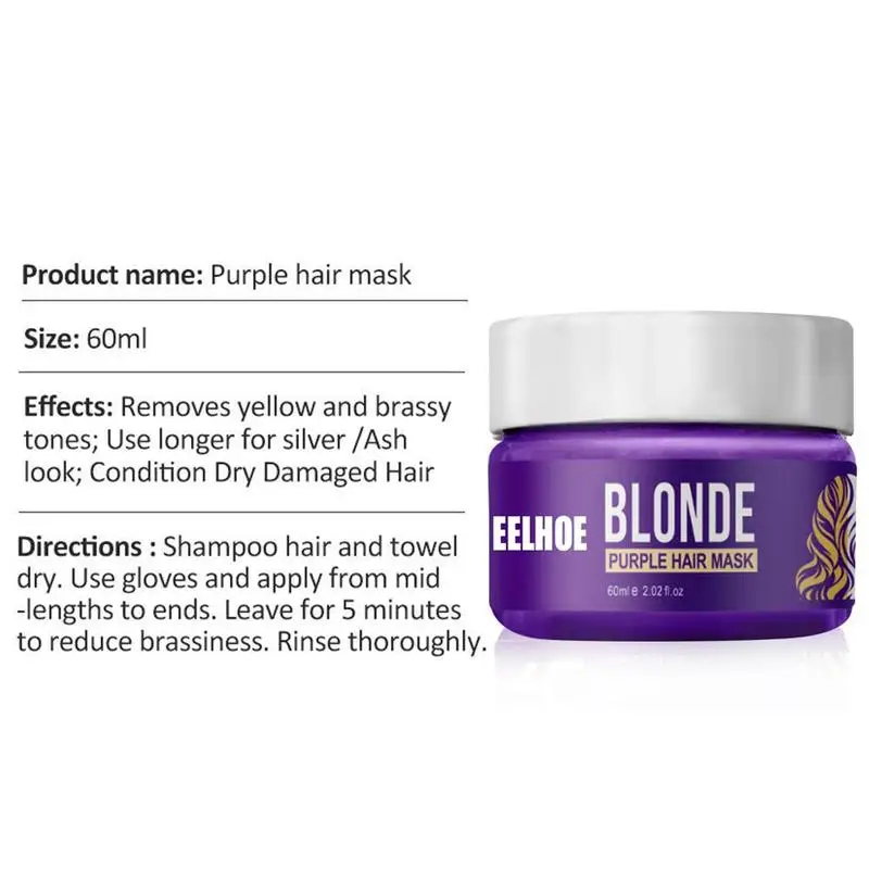 Крепкая волосы темно-фиолетового цвета маска, которая ухаживает против желтого пигмента в волосах,