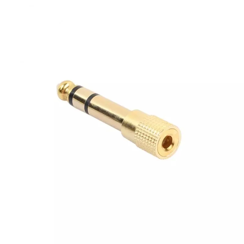Описание: Hi-Fi дизайн, тонкое мастерство Технология золотого покрытия Быстрая передача Сильная защита от помех, подключи и работай Стабильная производительность Меньше потери звука Технология измельчения зубчатой передачи обеспечивает близкое соединение Портативный и прочный Характеристики: Разъём A: 6,35 мм 1/4 ''мужской Разъём B: 3,5 мм 1/8 ''женский Цвет: черный и золотой (как на изображении) Диапазон использования: усилитель, наушники, микрофон аудио адаптер и другое оборудование