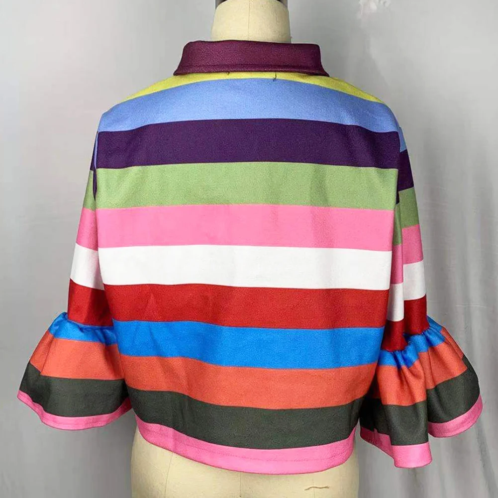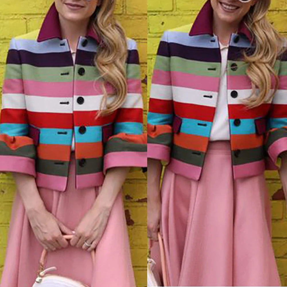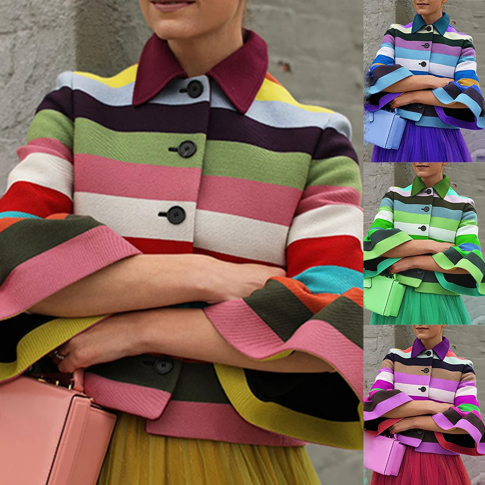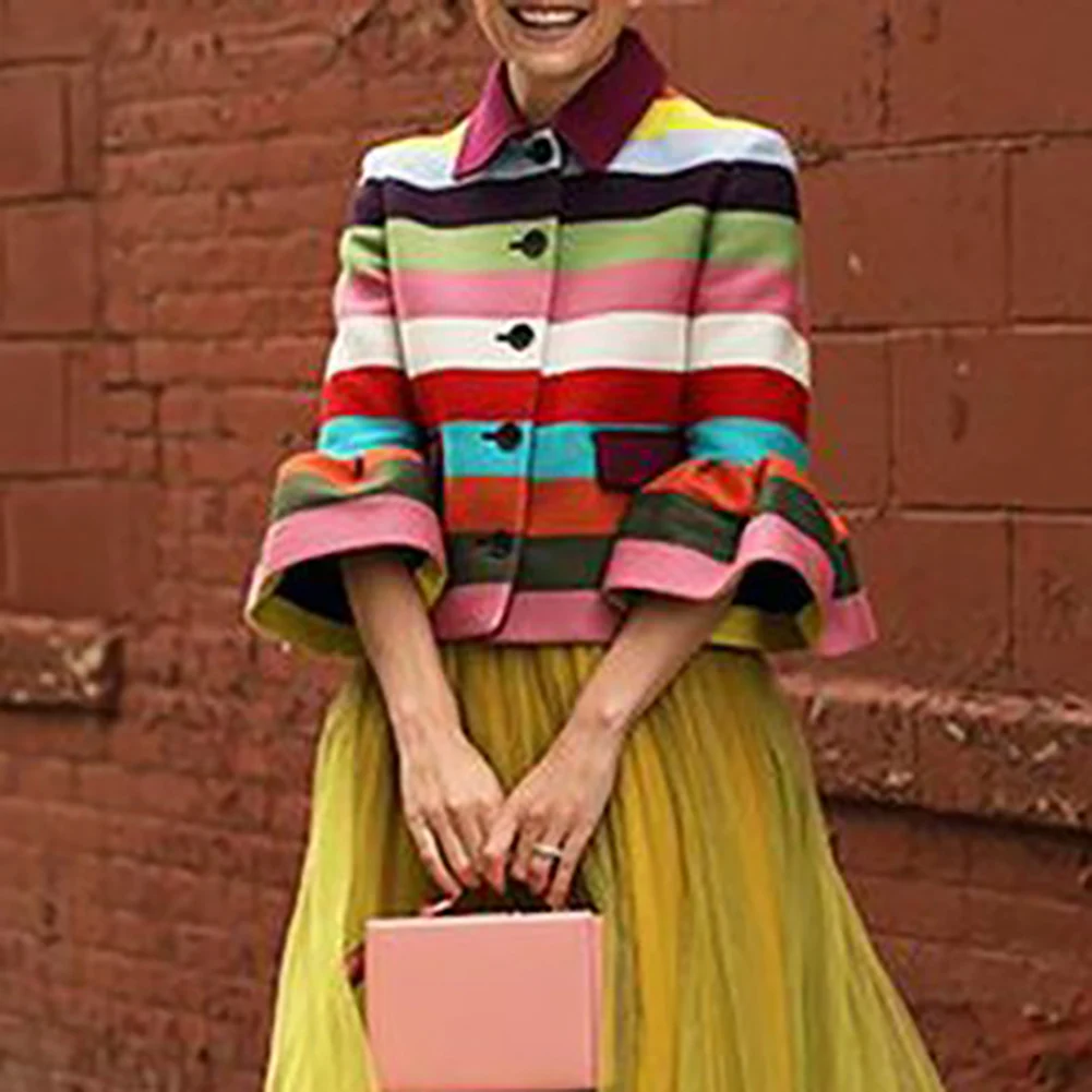 Особенности: однобортный; Радужные полоски; Рукав-лепесток
