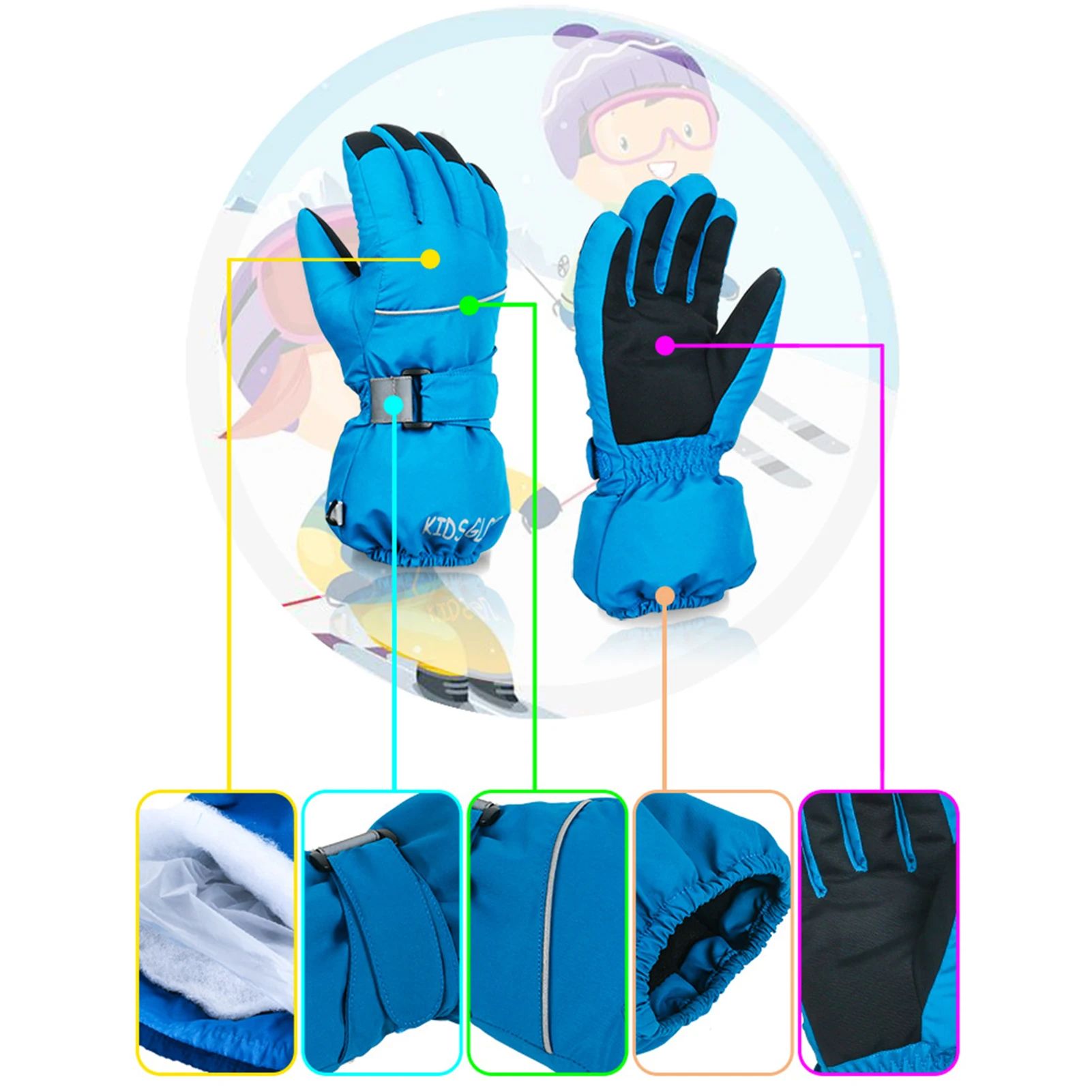 2 шт. Детские однотонные теплые зимние перчатки для катания на лыжах с пятью пальцами водонепроницаемые и ветрозащитные Нескользящие лыжные перчатки