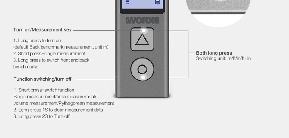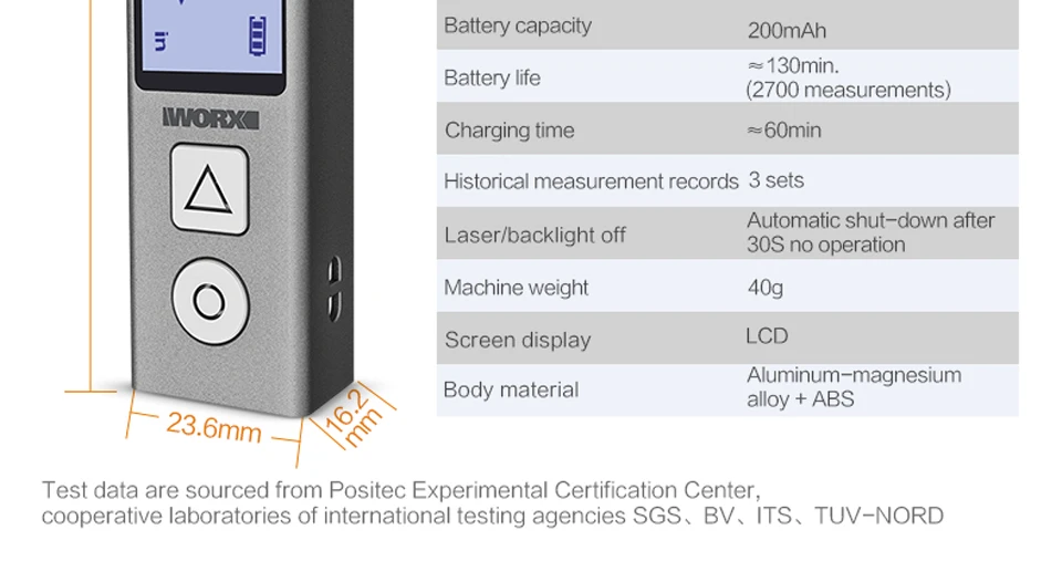Worx мини лазерный дальномер 40 м WX013 мини лазерный измеритель умный ЖК цифровой лазерный дальномер ручной карманный измеритель расстояния USB зарядка портативный Перезаряжаемый