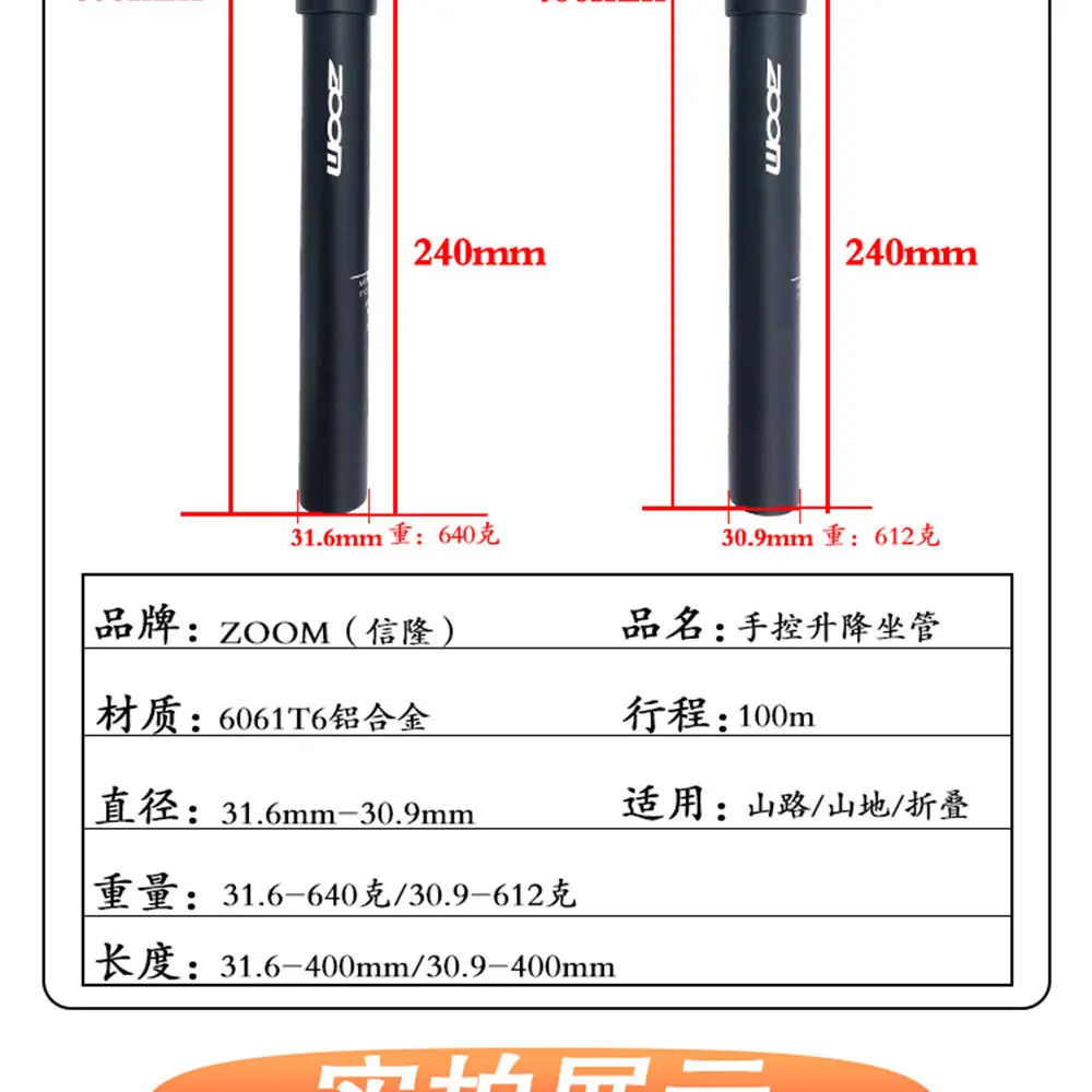 Бренд: ZOOM Xinlong Цвет: черный Материал: 6061 сплав Ход: 100 мм Длина: 375 мм Диаметр трубки сиденья: 30,9 31,6 Погрешность: 18 Вес: 656,8 г