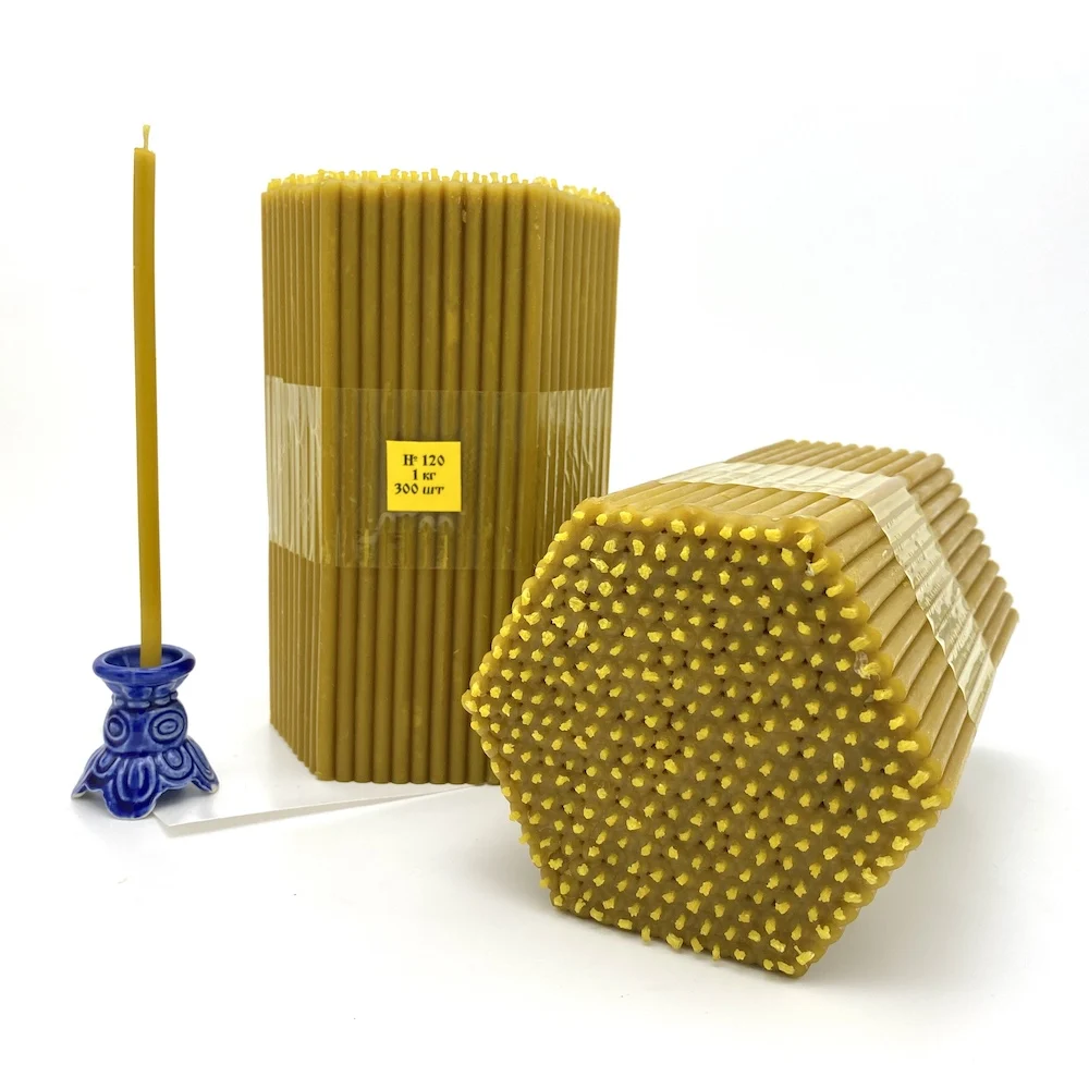 Composition: beeswax 30%, Yaroslavl technical wax 70%.Candlestick ceramic green "leaf"Candle Holder height: +-5 cmWidth of the total candlestick: +- 9 cmDiameter of the neck for the candle: 12mm(Suitable for candles under the number140, 120, 100, 80, 60, 40.)Candles at number 30, 20 and 10 in such a candlestick are not recommended, as the candle is heavy, the candlestick with a candle can fall.