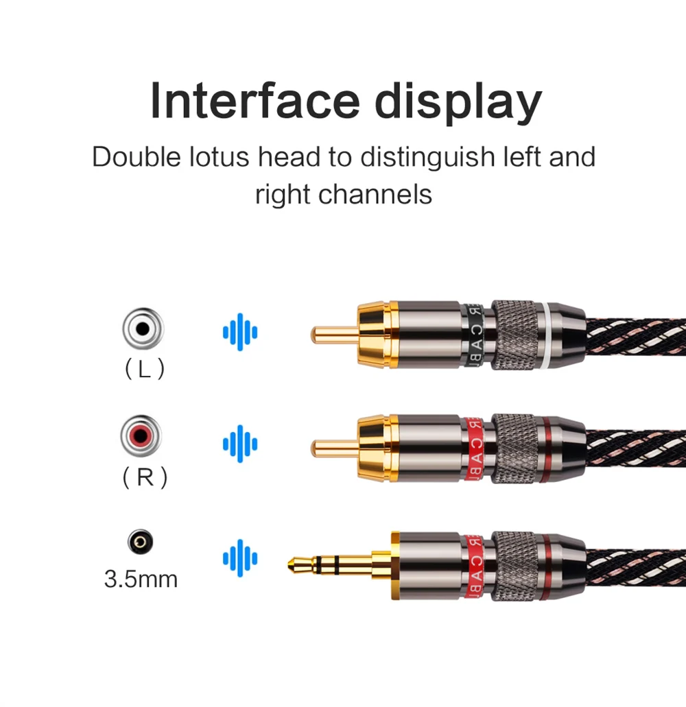 Аудиокабель в оплетке AUX 3,5 мм на 2 RCA со штекерами 2RCA, 1/2/3/5 м