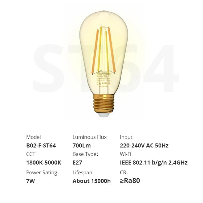 Хотите быстрый и простой способ получить доступ к умному дому и стремиться к меньшему энергопотреблению в вашей системе умного дома? SONOFF B02-F-A60/B02-F-ST64 умная светодиодный Лампа накаливания точно парит как современный интеллект, так и светодиодный эффект, а также винтажный внешний вид. Они достаточно надежны, чтобы воплотить все ваши идеи в реальность.