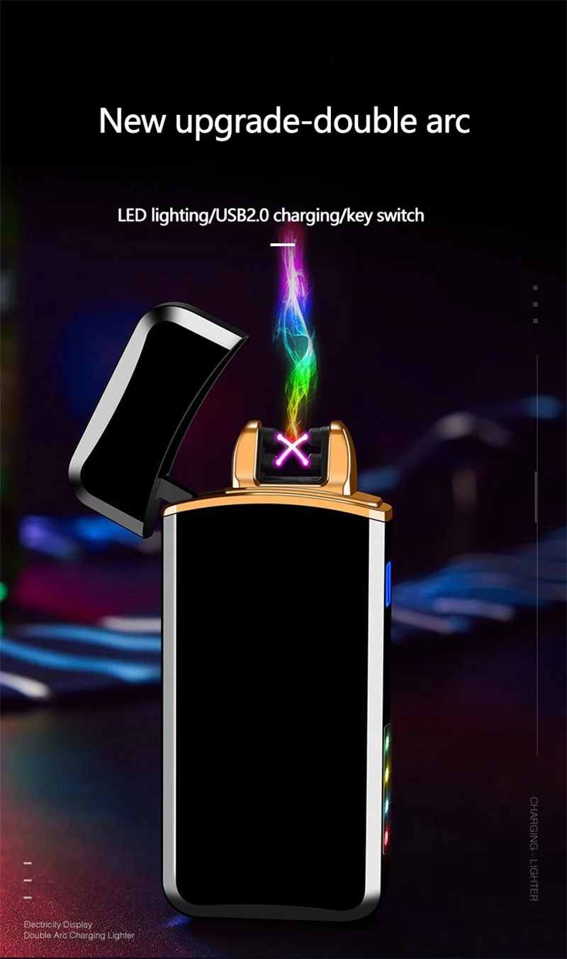 Ветрозащитная USB Двусторонняя зажигалка, зажигалка с зажиганием, портативная Зажигалка для зарядки, сенсорная Индукционная перезаряжаемая зажигалка