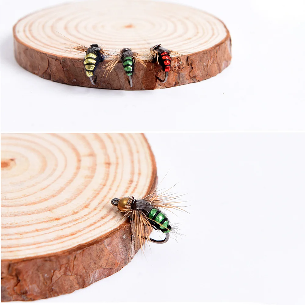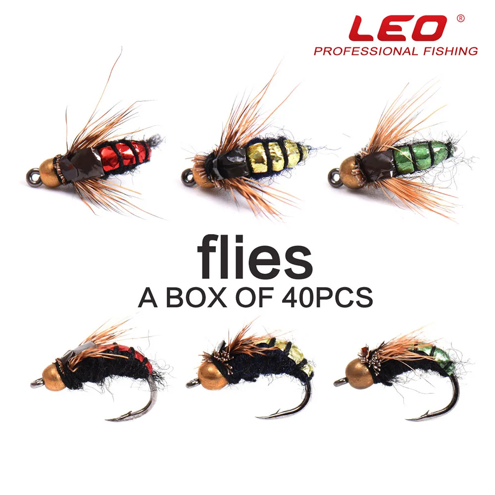 LEO 40 шт./кор. рыболовная приманка с высоким содержанием углерода Сталь крючки Пчелы серьги Nymph С Spinner, летающая приманка искусственная приманка-насекомое форель Fly для доставки прикорма и оснастки мух