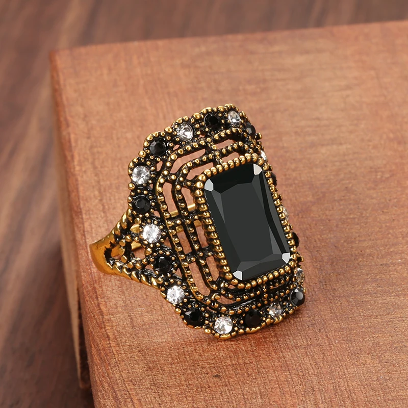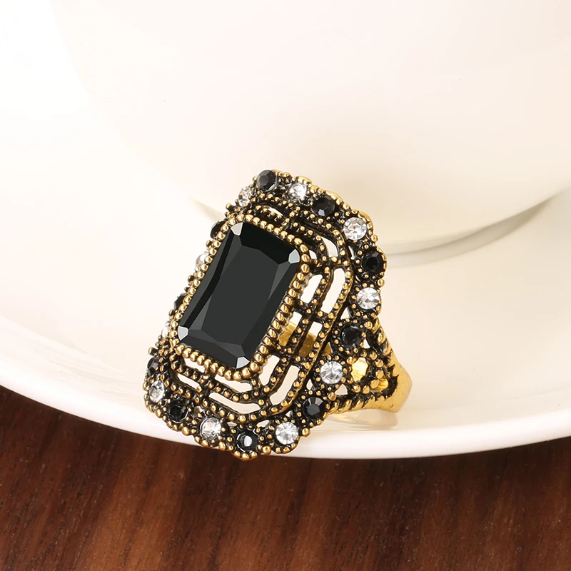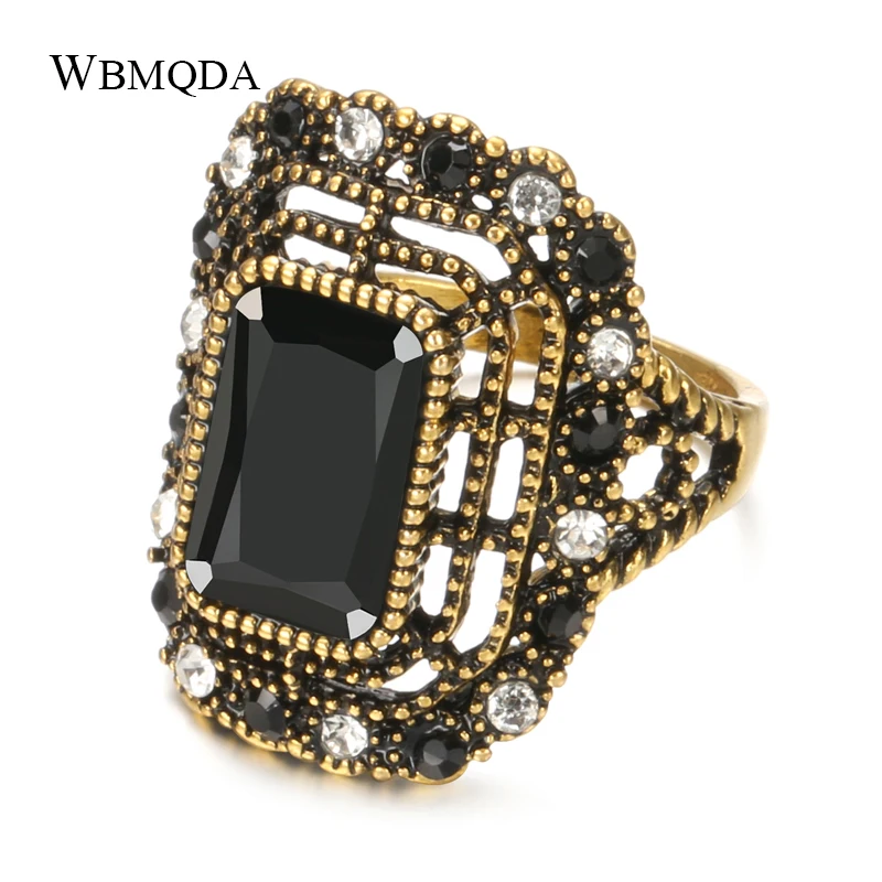 Wbmqda большое черное каменное кольцо для женщин, винтажный вид, старинное золото, модные хрустальные свадебные кольца с цветами для невесты, этнические ювелирные украшения в стиле бохо Бренд: Kinel Свадебные украшения Тип изделия: Кольцо Основной камень: натуральный камень Другие камни: кристалл Материал: золотой цвет Случаи: свидание/вечерние/Выпускной/подарок/День Святого Валентина