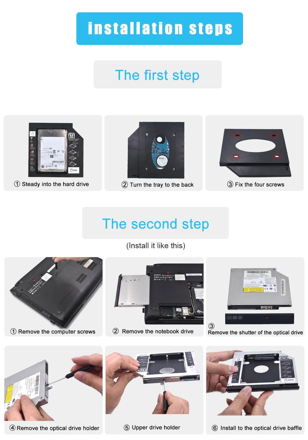 Универсальный ноутбук TISHRIC 9,5 мм/12,7 мм SATA, Caddy 2,5 дюйма, корпус жесткого диска дюйма, SSD, чехол Optibay для ноутбука