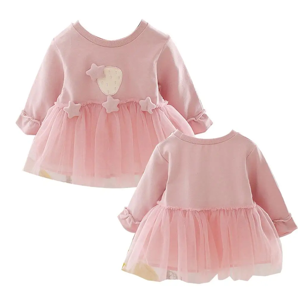Осеннее однотонное Тюлевое платье с длинными рукавами и украшением в виде звезд для маленьких девочек