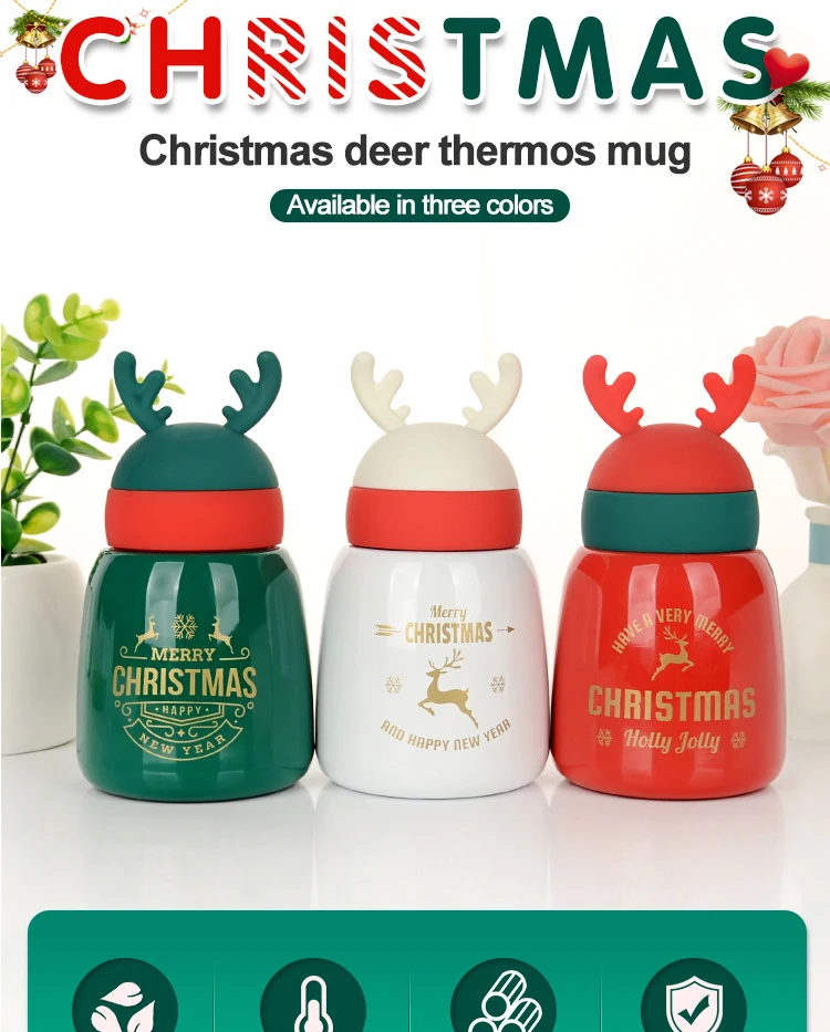 Рождественский термос, бутылки для воды, стакан из нержавеющей стали, кофе, молоко, чай, кружка, изолированная чашка, спорт, путешествия, творчество, бутылки для воды
