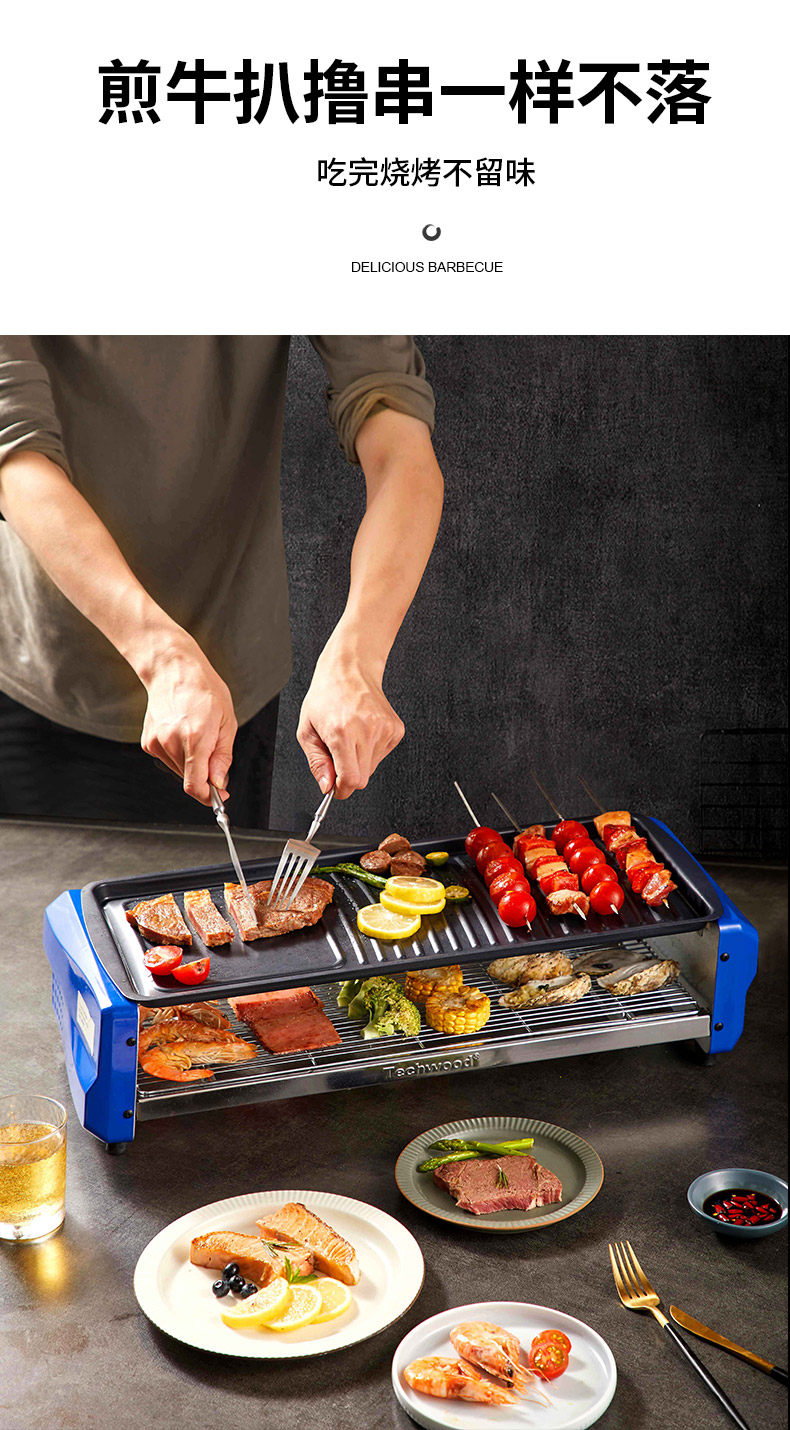 Двухслойная Бездымная электрическая сковорода, гриль для барбекю, раклетка, гриль, электрическая сковорода