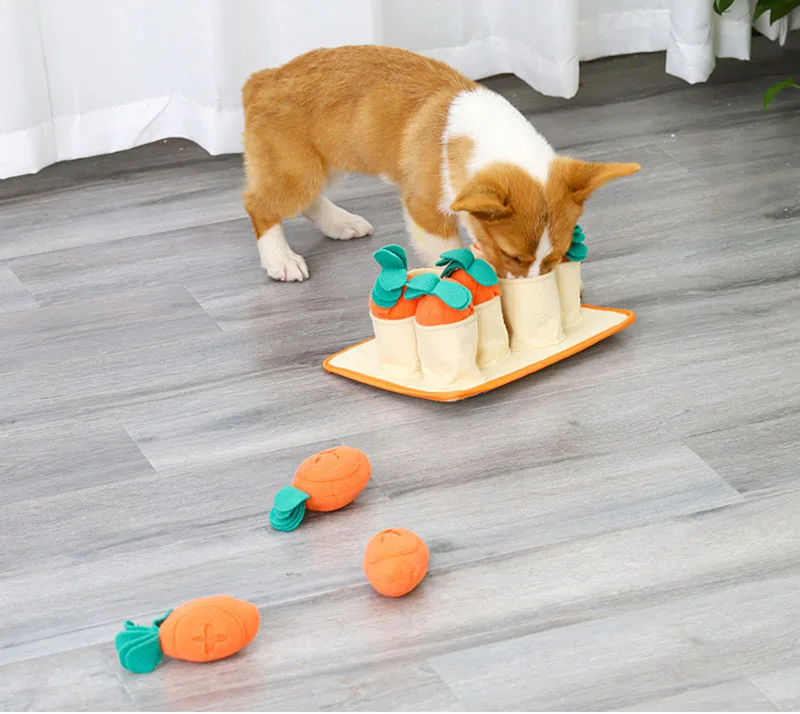 1. С несколькими карманами на каждой игрушка в форме моркови 2. Можно спрятать корм для домашних животных или угощение внутри кармана и отверстий для моркови 3. С Пищалками внутри каждой моркови ваши собаки получат удовольствие от часовой игры