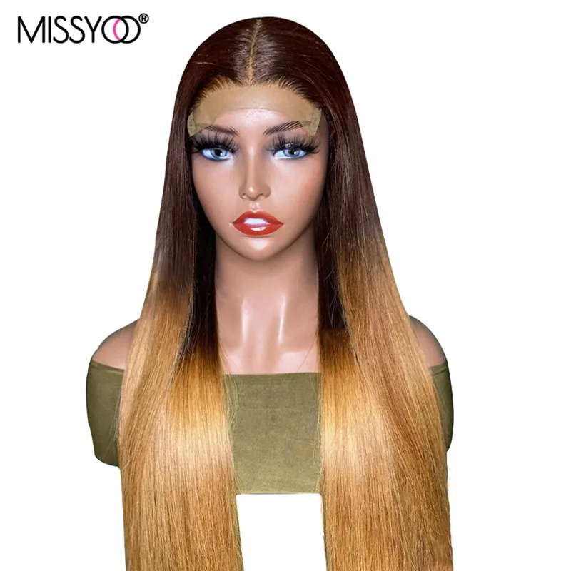 4x4 закрытие парик прямые парики из натуральных волос с Африканской структурой, Мёд блондинка с эффектом деграде (переход от темного к 13x1 Бразильский коричневый Цвет средняя часть Синтетические волосы на кружеве парик Волосы Remy 180%Прямые парики из человеческих волос