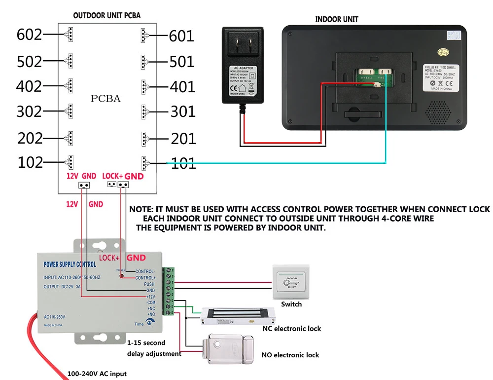 А. Простая установка самостоятельно с адаптером и кабелем, который мы предоставили в этом комплекте, наружный блок может подключаться к монитору внутри помещения с помощью проводного Кабеля. При подключении внутреннего монитора к беспроводному Wi-Fi роутеру, вы можете подключить мобильный телефон к монитору внутри помещения, затем мобильный телефон также может записывать видео или открывать дверь и т. Д. Широко используется в виллах, квартирах, домах, гостиницах, Офисы, общественные здания и так далее.