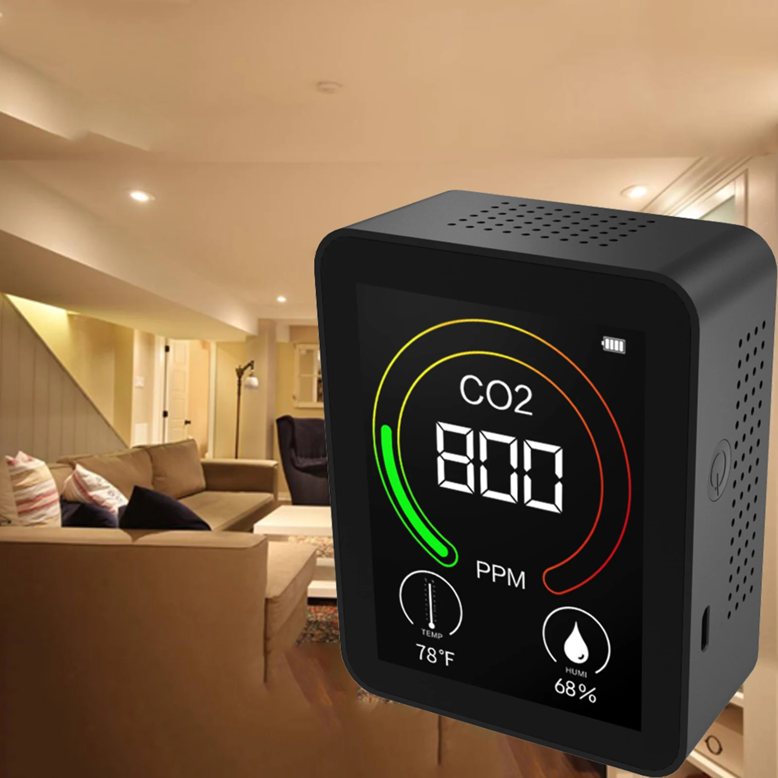 1. Практические функции: 3 функции обнаружения концентрации углекислого газа, термометра и гигрометра в одном.