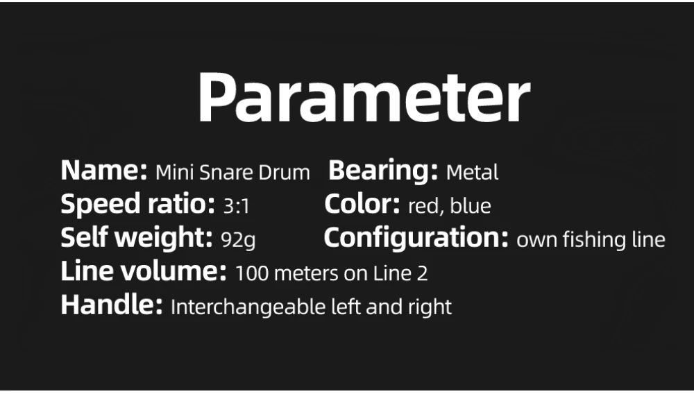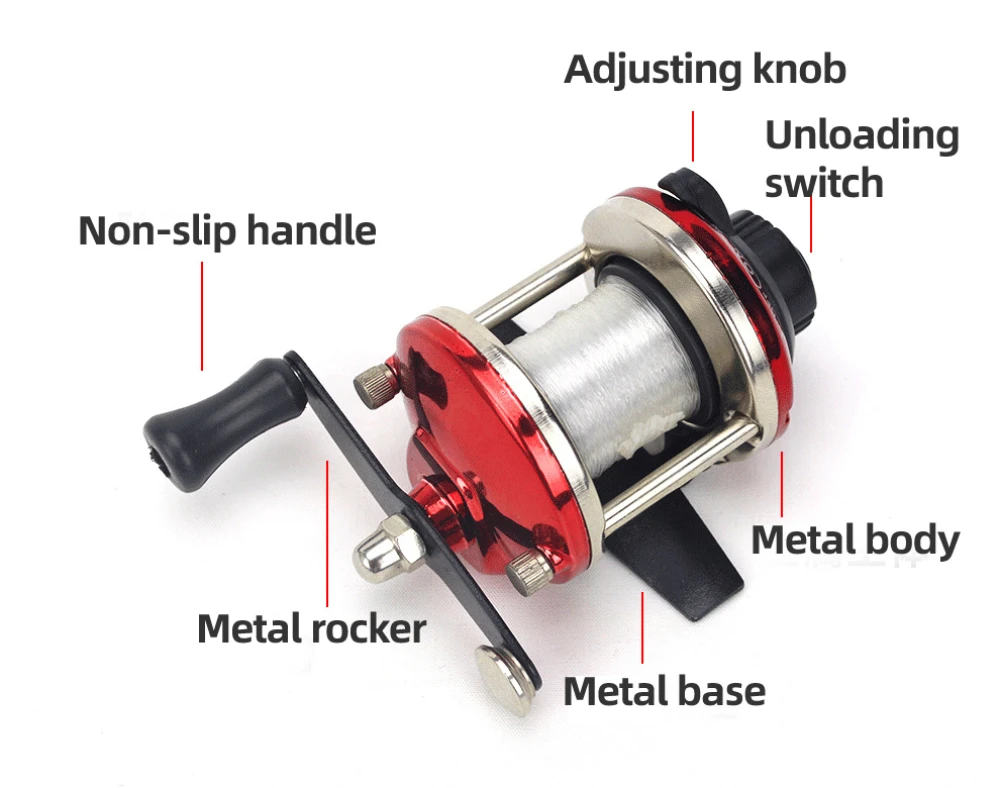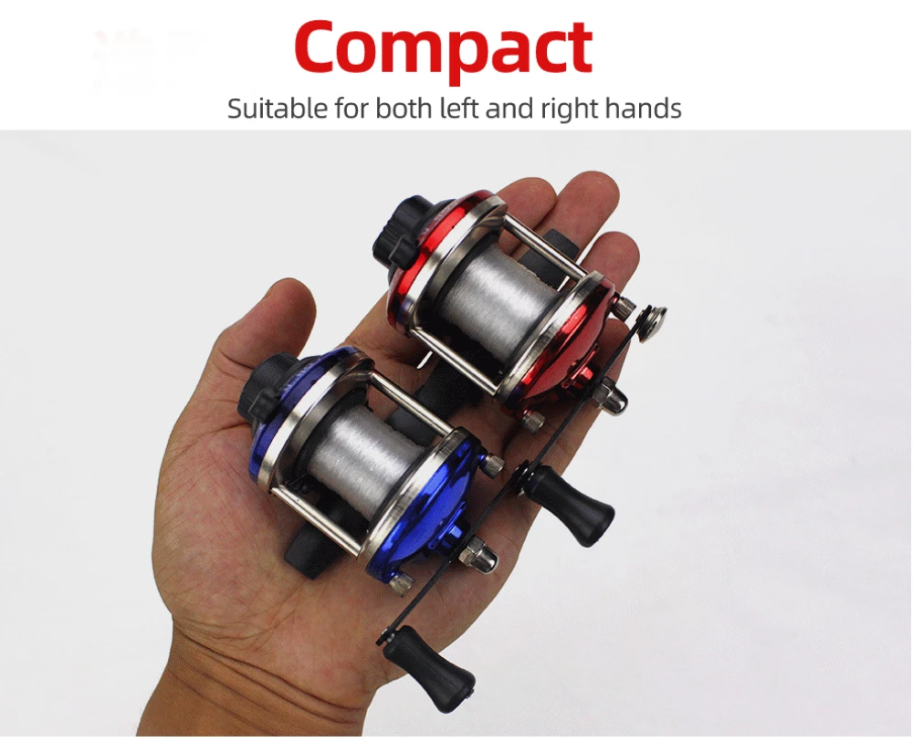Название: мини-барабан Подшипник: металл Соотношение скорости: 3:1 Цвет: красный/синий Собственный вес: 92 г Конфигурация: 1 * Рыболовная катушка/1 * нейлоновая леска Объем линии: линия 2 / 100 метров Ручка: сменная левая и правая