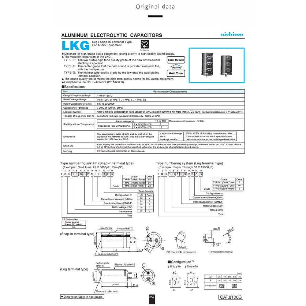 ● Электролитические конденсаторы серии Nichicon KG разделены на 3 класса, тип II-премиальный продукт в золотом настроении.