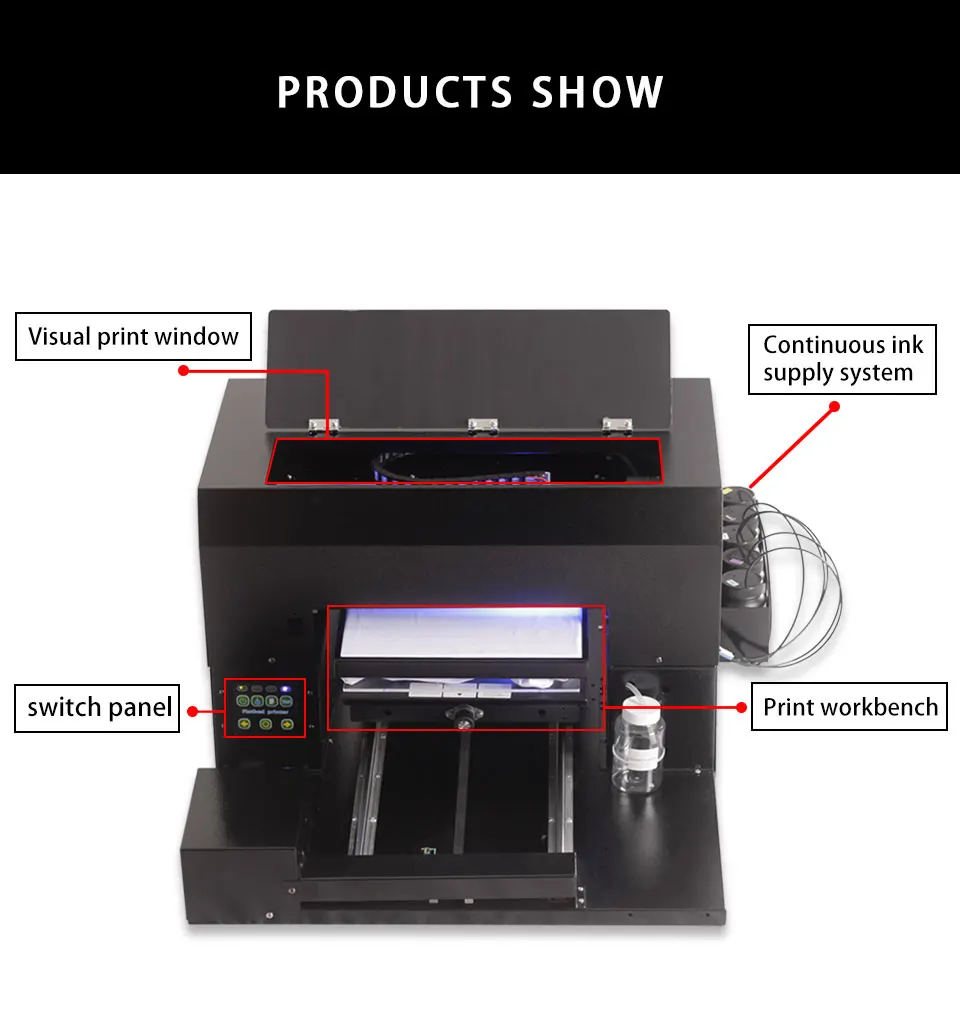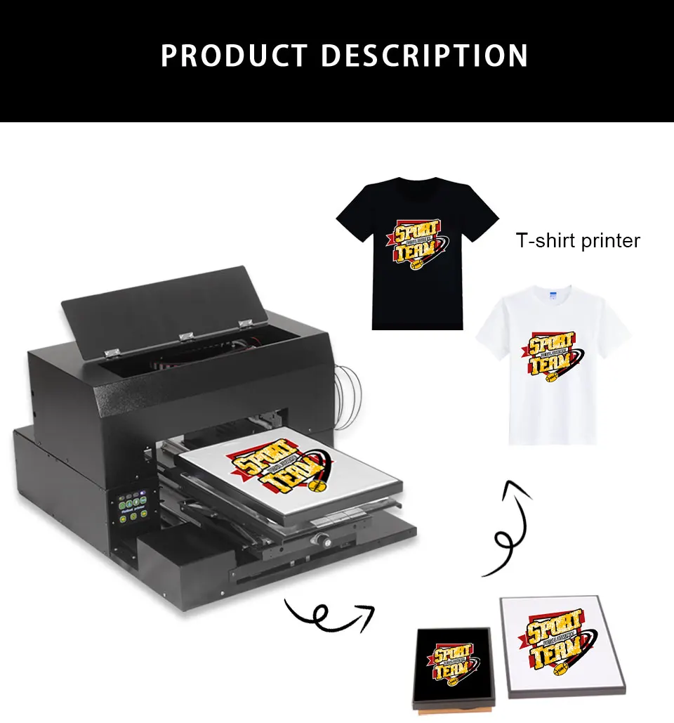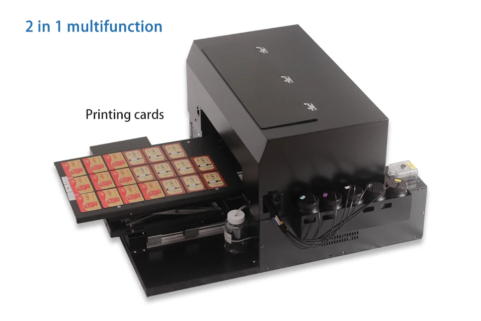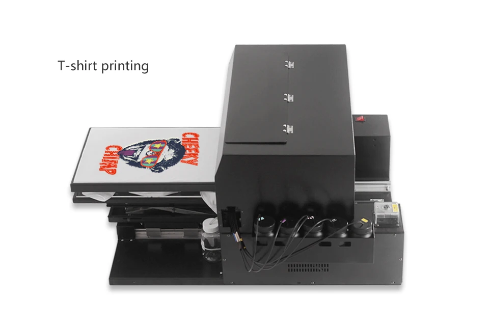 Доска ②: Отправьте 1 принтер A3 DTG, 1 лоток для футболки A3 и 1 набор текстильных чернил. Это DTG принтер, который может печатать только футболки и не имеет уф-системы.