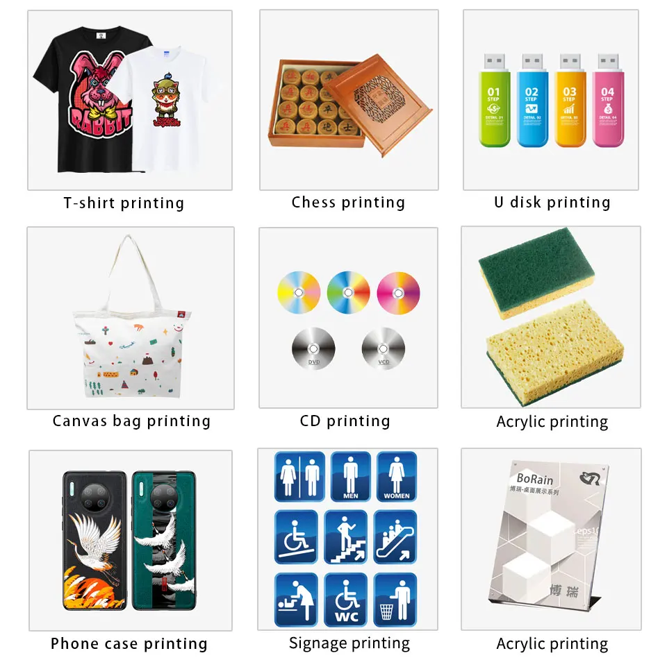 3. Универсальная печатьОбласть применения продукта: большинство самолетов могут быть напечатаны практически неограниченным материалом.Например: мобильный телефон, оболочка, одежда, гольф, этикетки, каменная пластина рельеф, акрил, кошелек, закаленная пленка на заказ, обои, плитка, U диск, CD и так далее.