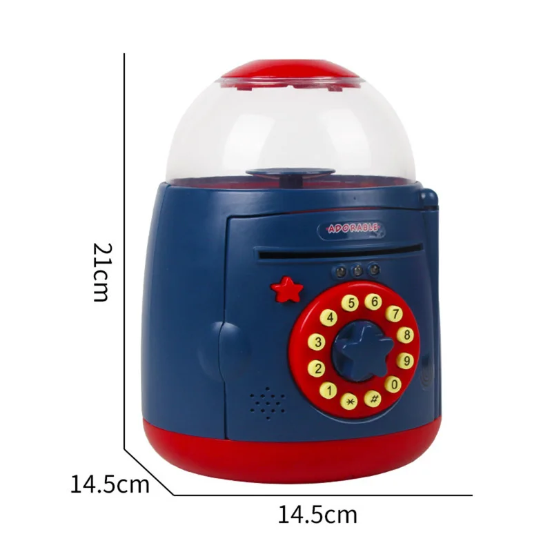 1. Может спеть 2Can рассказать историю 3. Откройте коробку с паролем, разблокировкой отпечатков пальцев, 4. Автоматическая учетная запись 5. Откройте коробку с паролем, переводом на китайский и английский языки 6. Звук и светильник 7. Переместите деньги, чтобы ввести деньги, аккуратно поместите бумажные деньги в депозитный порт, бумажные деньги будут свернуты в денежную коробку, и они будут воспроизводиться с этой музыкой 8. Как играть: Положите монету внутрь и поверните, поместите монету в диск копилки, монета вращается, как танцы, если монета не может войти в диск, она не может вращаться