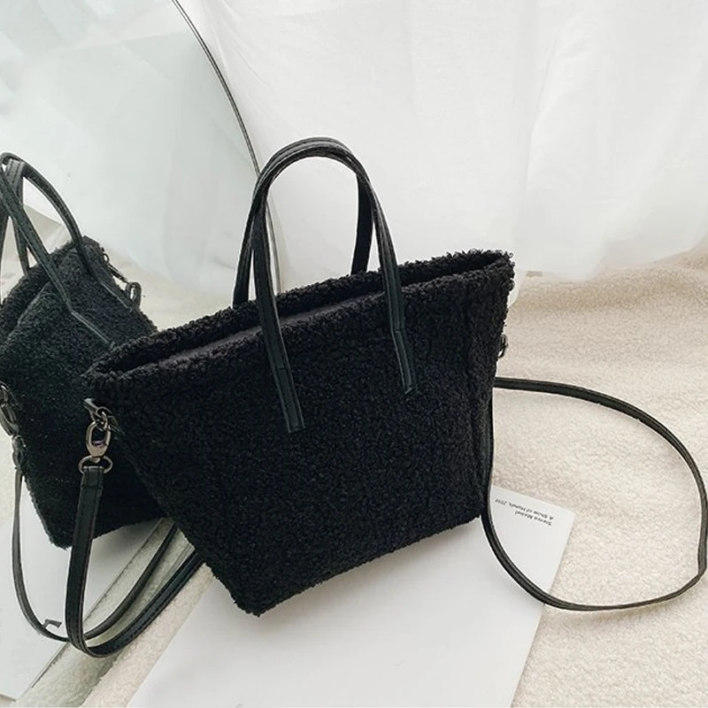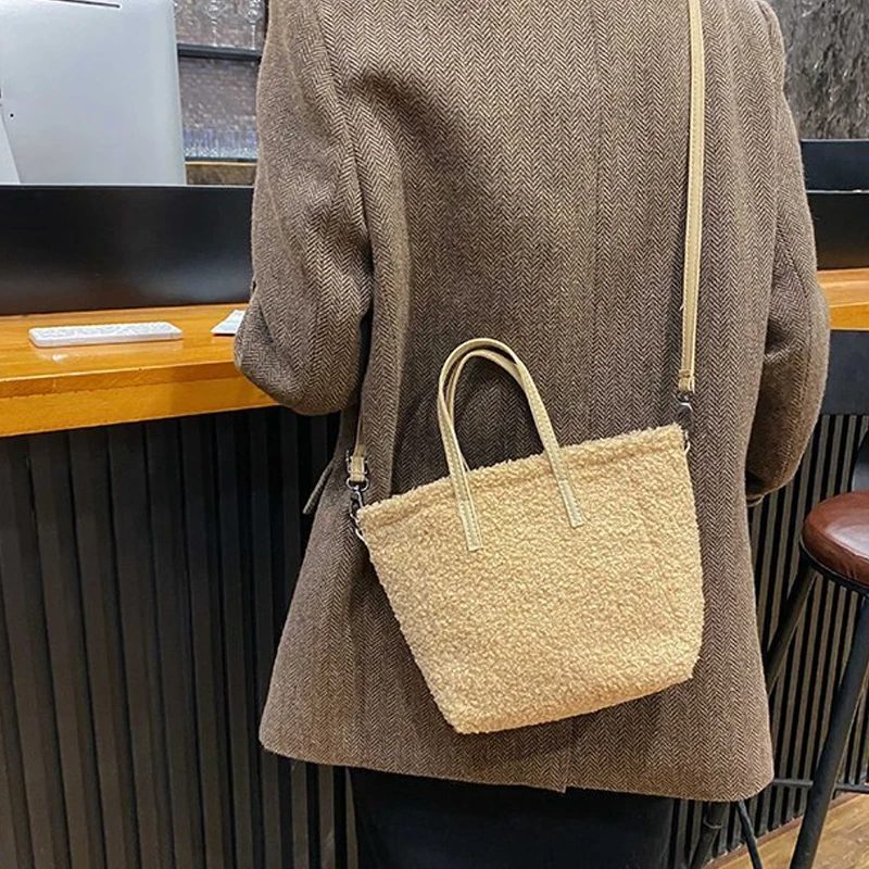 DescriptionПовседневные зимние осенние плюшевые однотонные сумки на плечо для женщин, 2021 Большая вместительная сумка, дорожная сумка для покупок, сумки