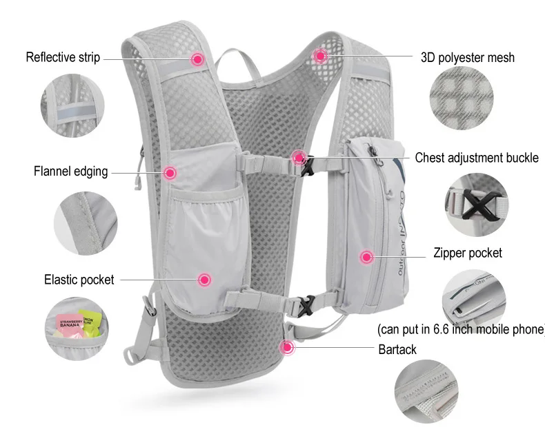 Название продукта: сверхлегкий рюкзак для бега по пересеченной местности Материал: 90% полиамид + 10% спандекс эластичная ткань + 3D полиэфирная сетка Размер: 35 см x 18 см Рекомендуемый Обхват груди: 60-130 см Емкость: около 5л Цвет: 9 цветов на ваш выбор Все фотографии являются настоящей съемкой, но из-за воздействия освещения и разных экранов Показанный цвет немного отличается. Все размеры выполнены вручную, допускается погрешность в 1-2 см, спасибо.