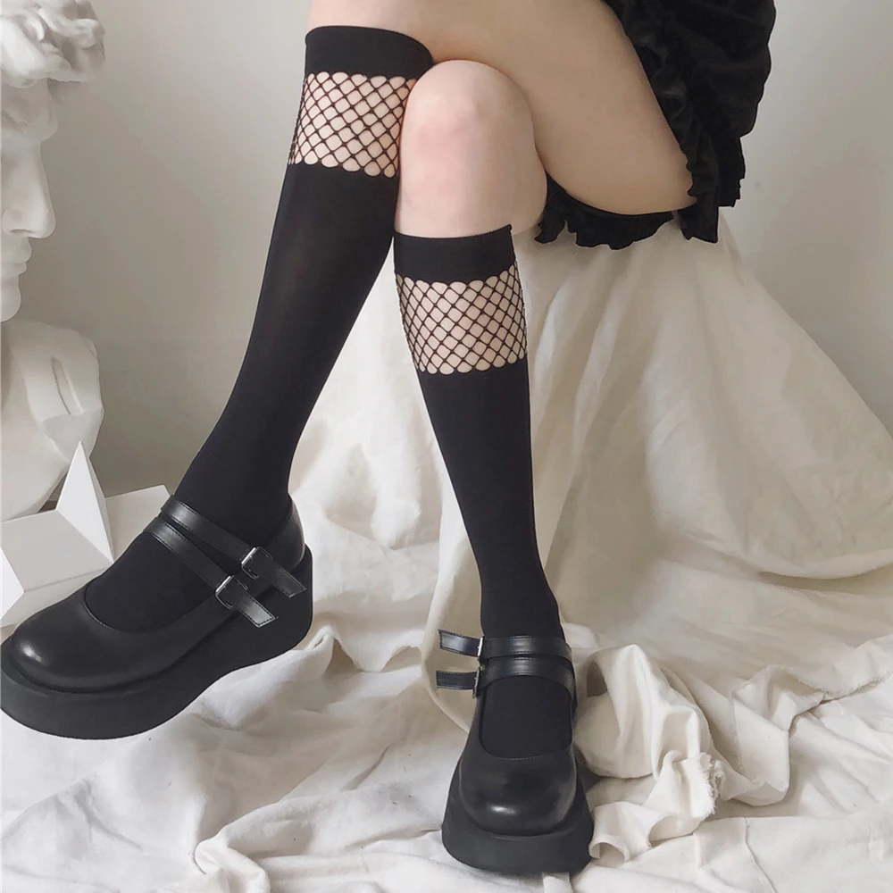 Сетчатые бархатные носочки JK, костюмы для косплея, аксессуары, Униформа, темные модные чулки в сеточку для девочек, Лолита