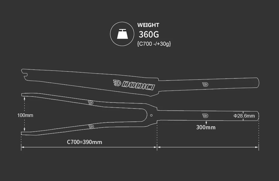 Бренд: DODICI Название: MTB углеродная вилка 1-1/8 Серия: DODICI Pro 700C Внешний вид: 3K Материал блеска: полностью углеродное волокно Цвет: черный Размер: дорожный C700 Вес: около 360 ± 20 г (C700) Диаметр: 28,6 мм 1-1/8 Ширина: 100 мм Тип: MTB стержень велосипед