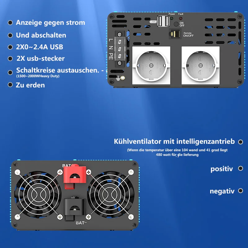 Предупреждения 1) Прочитайте руководство перед использованием и сохраните его для справки в будущем. 2) Не помещайте инвертор под Солнечный свет, источник нагрева, влажную среду. 3) Корпус инвертора будет теплым при использовании, Пожалуйста, избегайте касания материала Не выдерживает высоких температур, таких как одежда, спальный мешок, ковер и т. д. 4) инвертор предназначен для использования с электрической системой отрицательного заземления! Не используйте его С положительными наземными электрическими системами (большинство современных автомобилей, RVs, грузовики и лодки являются отрицательными наземными). 5) не разбирайте устройство случайным образом, это может привести к пожару или поражению электрическим током. 6) Держите детей подальше от инвертора и не позволяйте им играть в устройство. 7) инвертор будет выводить мощность переменного тока как полезная мощность, пожалуйста, отнеситесь к выходному терминалу так же осторожно, как и к домашней розетке переменного тока. Не помещайте другие вещи в выходной терминал, за исключением электрического Штепсель прибора. Это вызовет опасность или пожар, если использовать неправильно. 8) отсоедините аккумулятор и инвертор, когда инвертор не используется. 9) Пожалуйста, не подключайте к солнечному контроллеру напрямую, только аккумулятор.