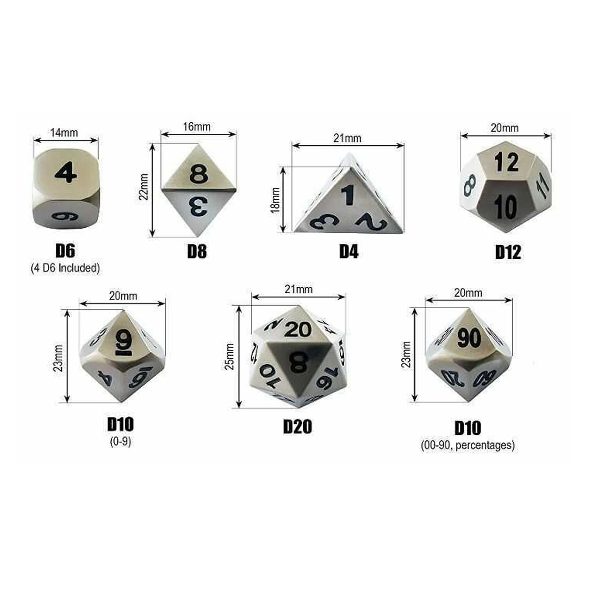 Набор металлических многогранных игральных костей DND, 7 шт., набор игральных костей для ролевых игр с напечатанными цифрами и сумкой для хранения, для RPG, MTG, D & D, обучение математике