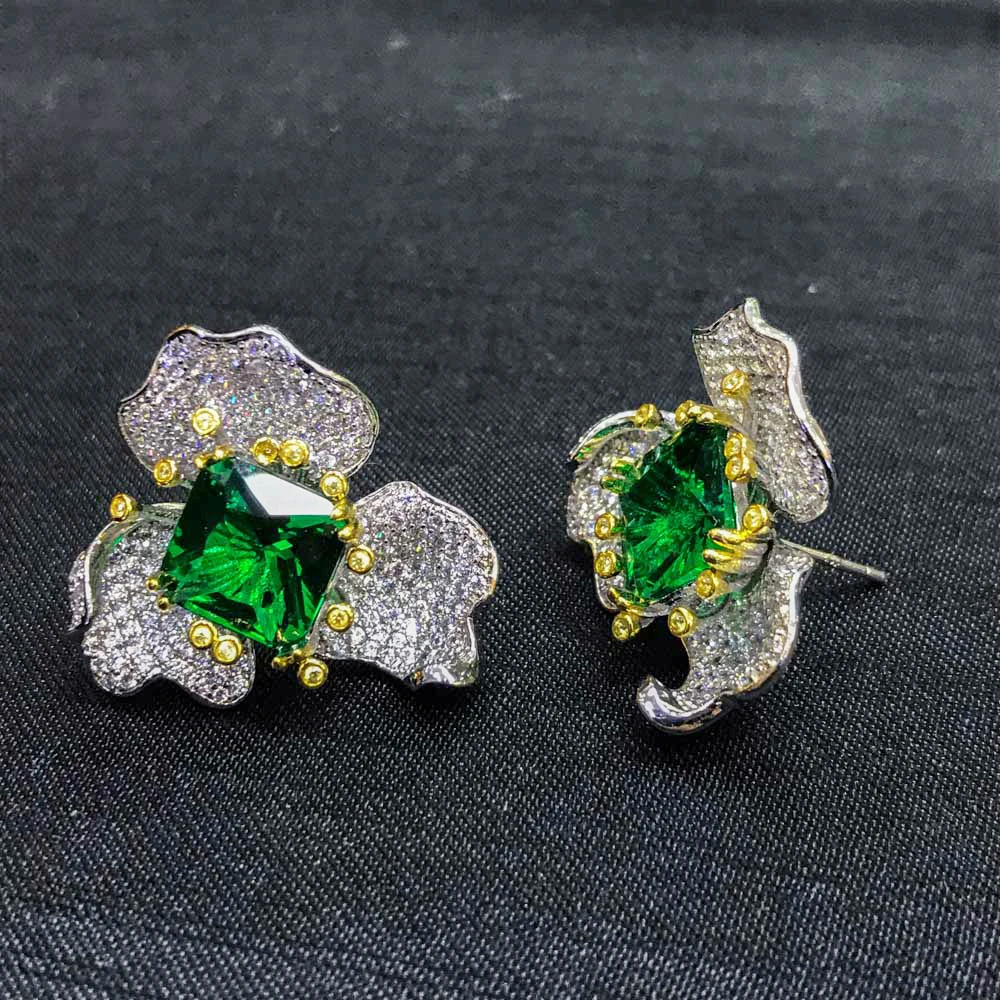 Изумрудные большие серьги из стерлингового серебра 925 пробы, драгоценный камень для женщин, Свадебные вечерние ювелирные украшения, подарок Драгоценный камень: созданный драгоценный камень Размер камня: 10 мм