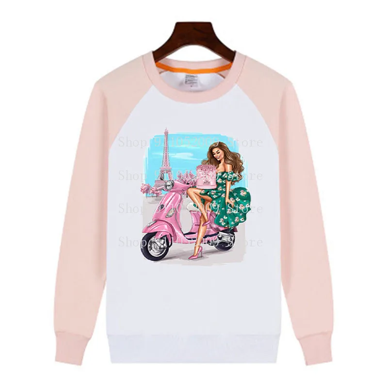 Harajuku уличная одежда для отдыха Женский пуловер с принтом и вырезом лодочкой Женская толстовка с розовыми рукавами Белый свитшот на выбор