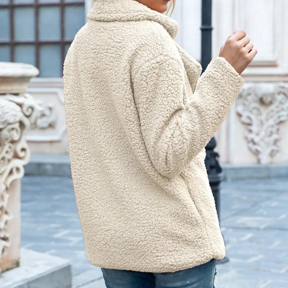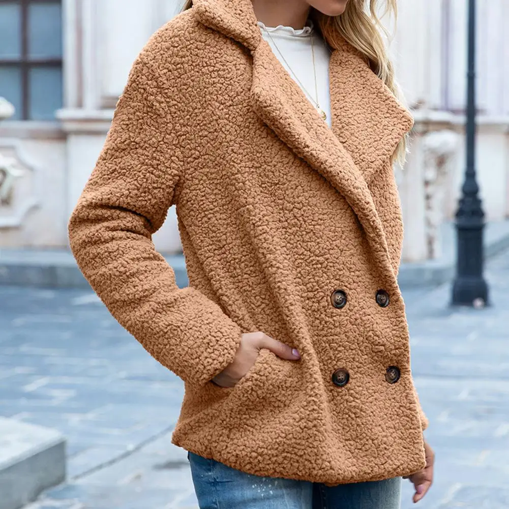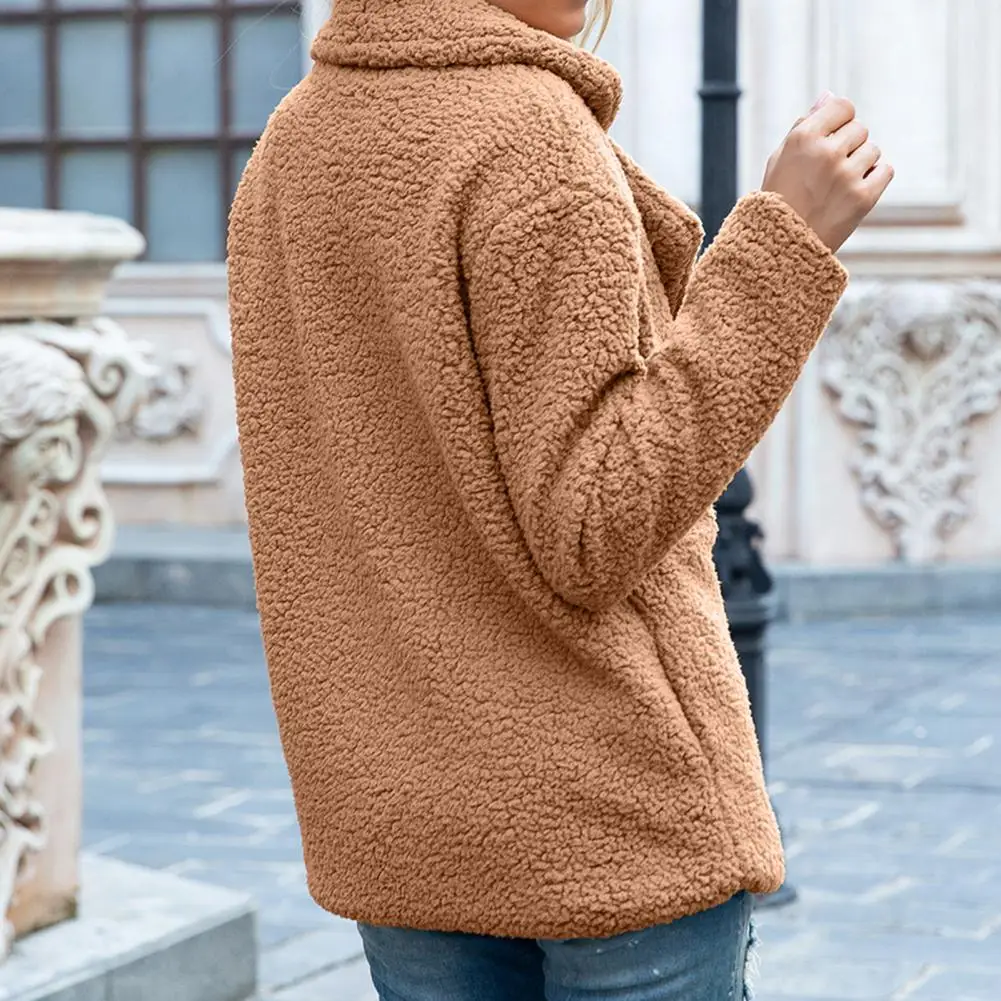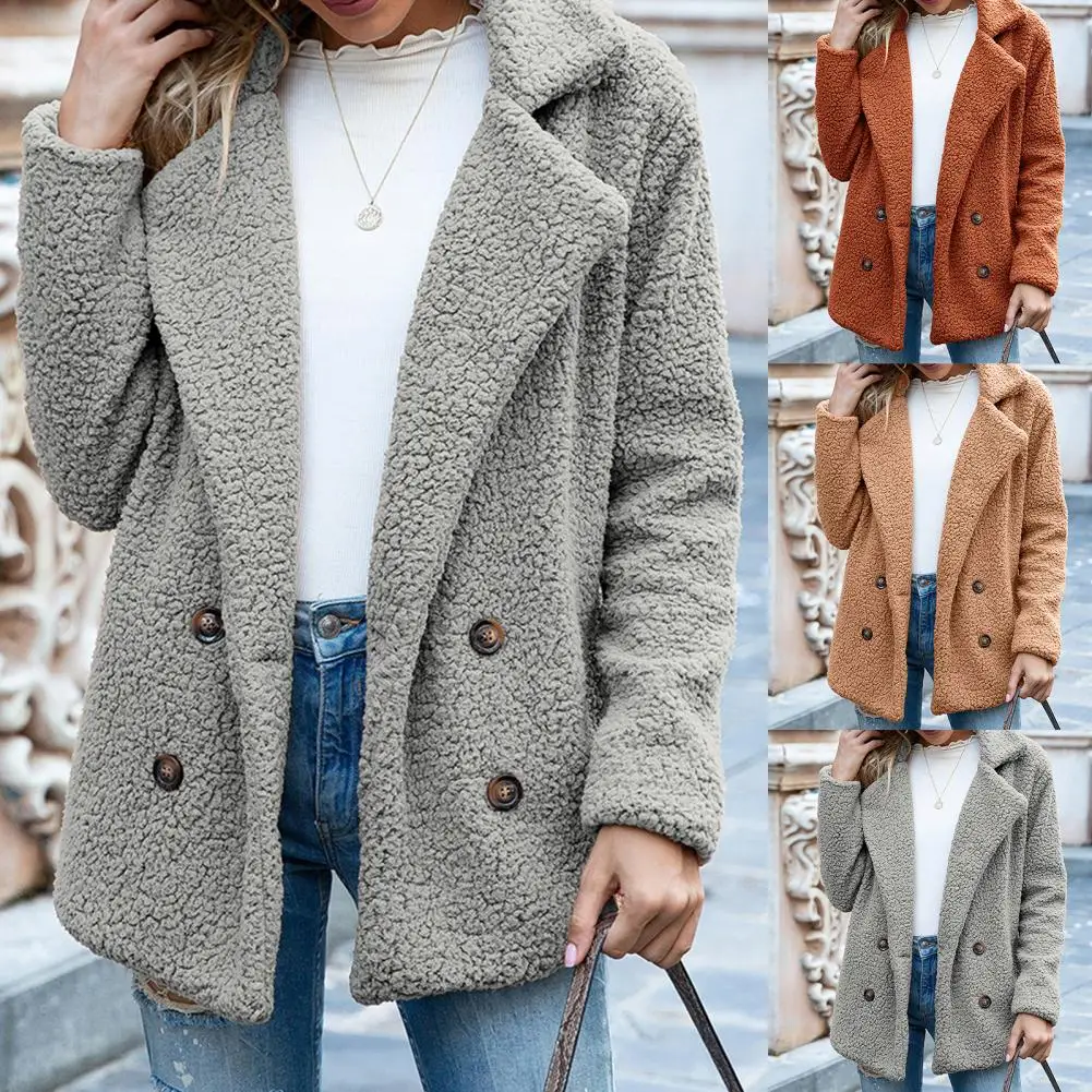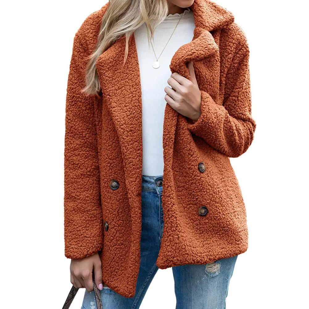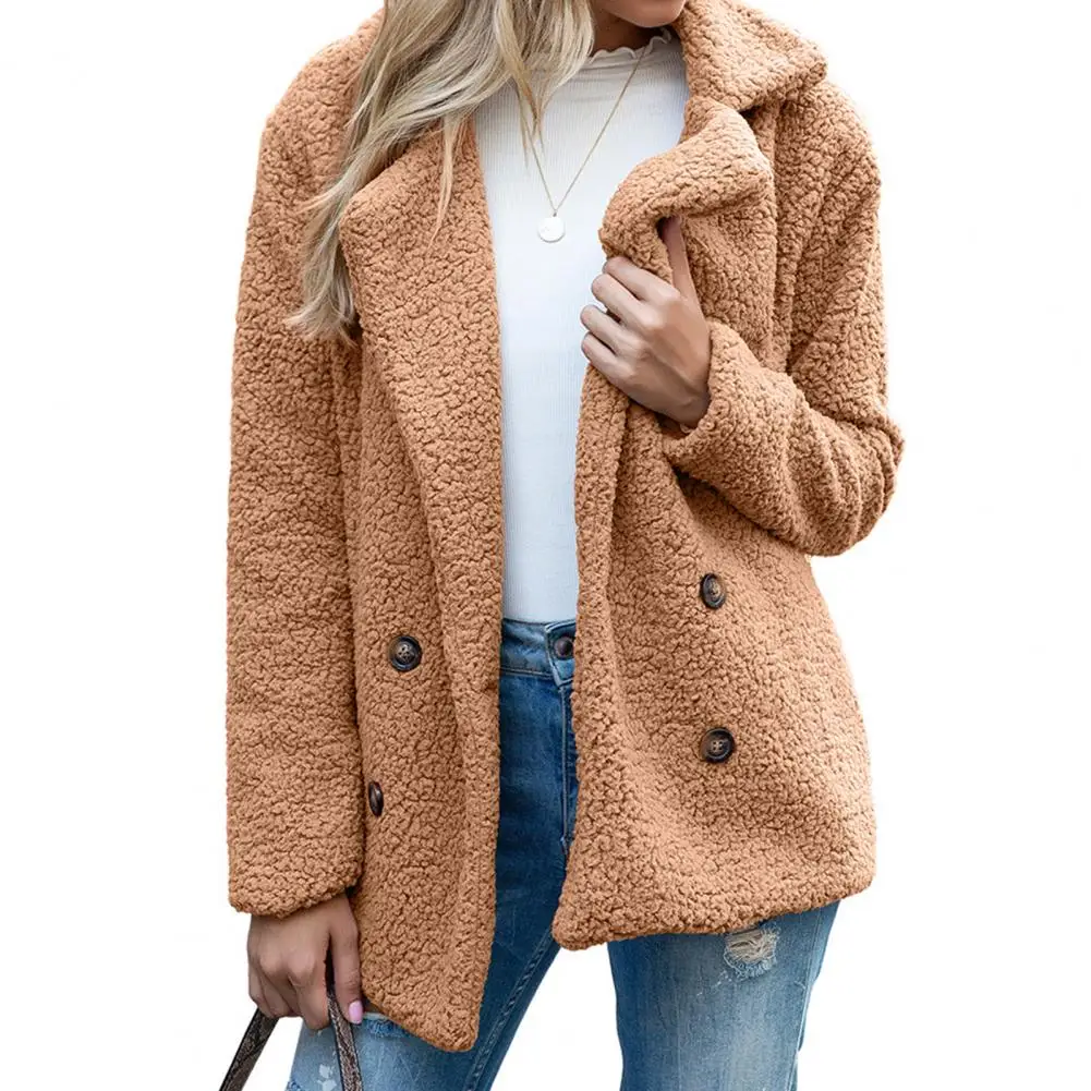 Женская зимняя куртка из искусственного флиса с длинными рукавами и пуговицами, пальто с отворотом, теплая куртка с открытой передней частью