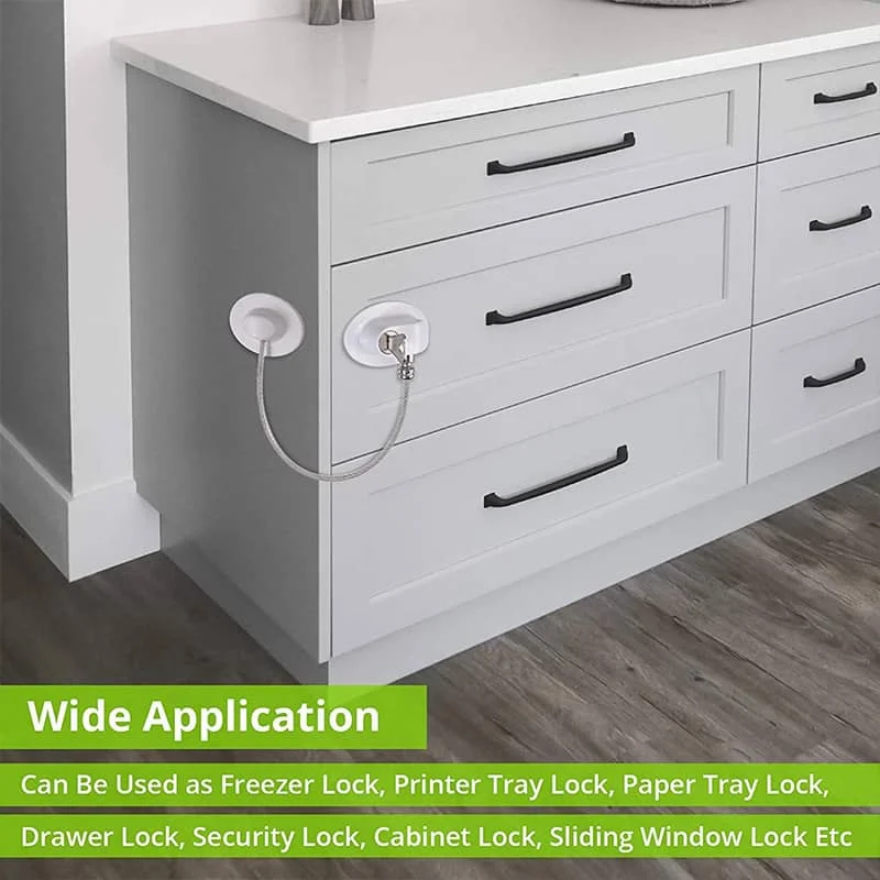 Это гораздо больше, чем просто замок холодильника. Его также можно использовать как замок шкафа, замок безопасности здравоохранения, замок лотка принтера, замок для духовки, замок ящика файла, замок шкафа, замок сарая, и т. Д.