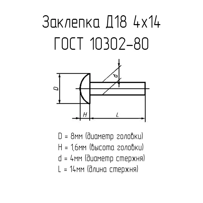 Дюралюминиевые заклепки для лодок Д18, полнотелые под молоток, шляпка четверть сферы (низкая), ГОСТ 10302-80.