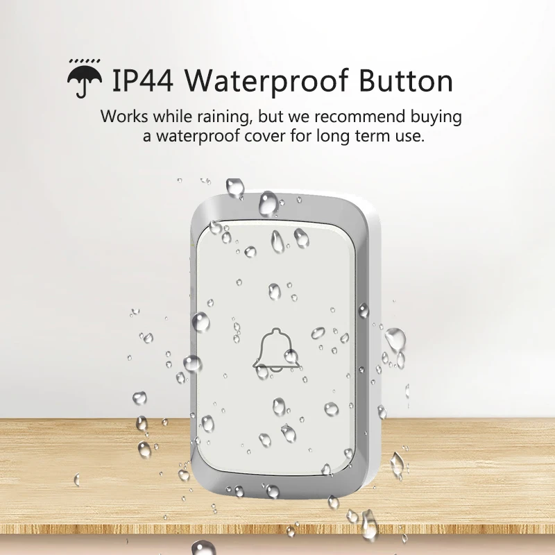 Материал: АБС-пластик Цвет: белый/черный Вилка: штепсельная вилка EU/US/UK (адаптер AU) Напряжение приемника: AC110-240V Тон Кольца: 60 тонов полифонического кольца на выбор Громкость: 5 файлов (включая Отключение звука) Водонепроницаемость: IP44 (передатчик) Дистанционный диапазон: 300 метров на открытой местности Мощность передатчика: 12V23A щелочная батарея (не входит в комплект)