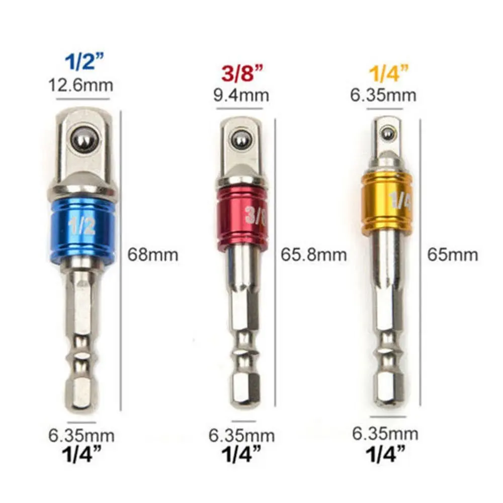 Общее использование: этот комплект из 3 удлинителей с шестигранным хвостовиком и наконечником предназначен для удовлетворения различных потребностей. Плотно и надежно помещается в патрон для дрели или ручной привод. Состоит из наиболее распространенных размеров бит 1/4 дюйма, 3/8 дюйма и 1/2 дюйма, изменяющих РАЗМЕРЫ ХВОСТОВИКА. Обеспечивает универсальность и удобство независимо от того, какой инструмент вы выбрали. Отлично подходит для ремонта дома, а не для промышленных работ. Отличное дополнение к любому набору ящиков для инструментов.
