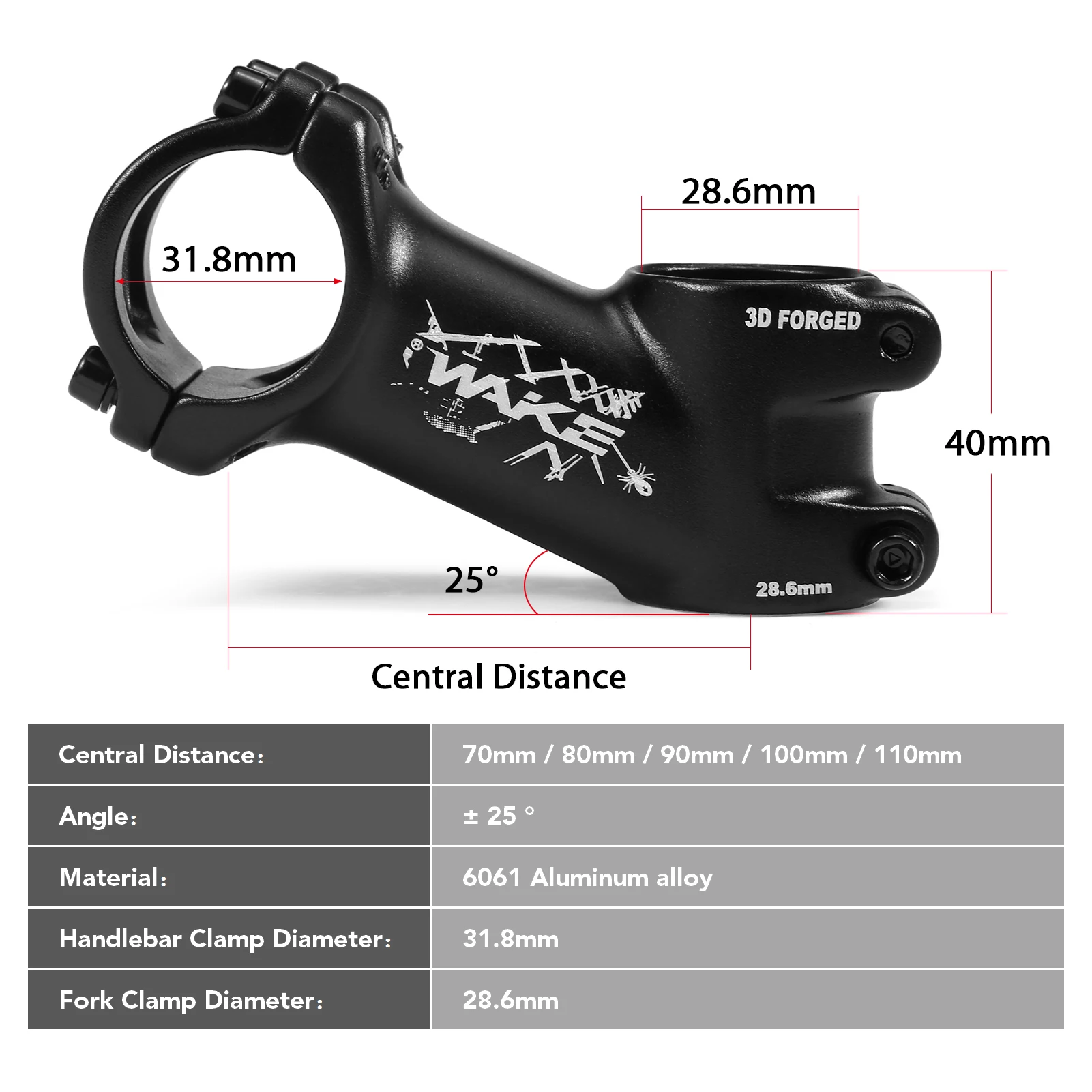 WAKE велосипедный ствол для горной дороги, велосипедный ствол, Сверхлегкий вынос руля 31,8 мм, руль для руля, 25 градусов, 70, 80, 90, 100, 110 мм, детали питания для велосипеда