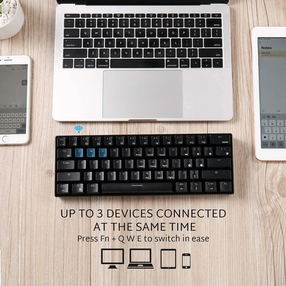 Двухрежимная клавиатура, BT + проводной интерфейс Type-C, двойное соединение подходит для нескольких устройств. Несколько устройств можно использовать с бесшовным переключением.